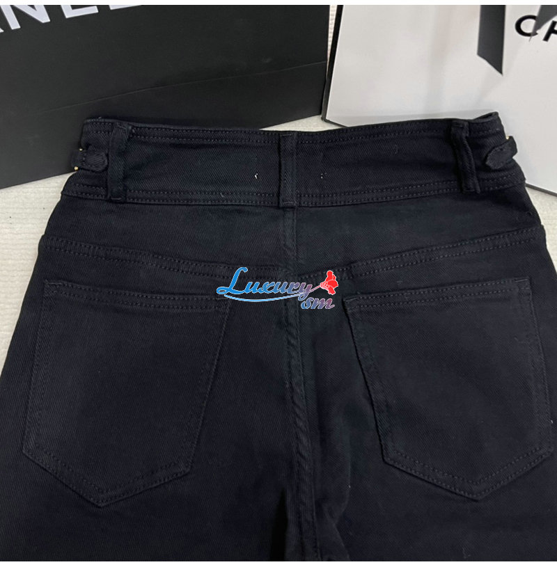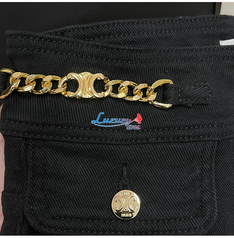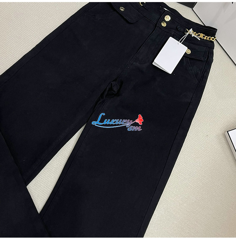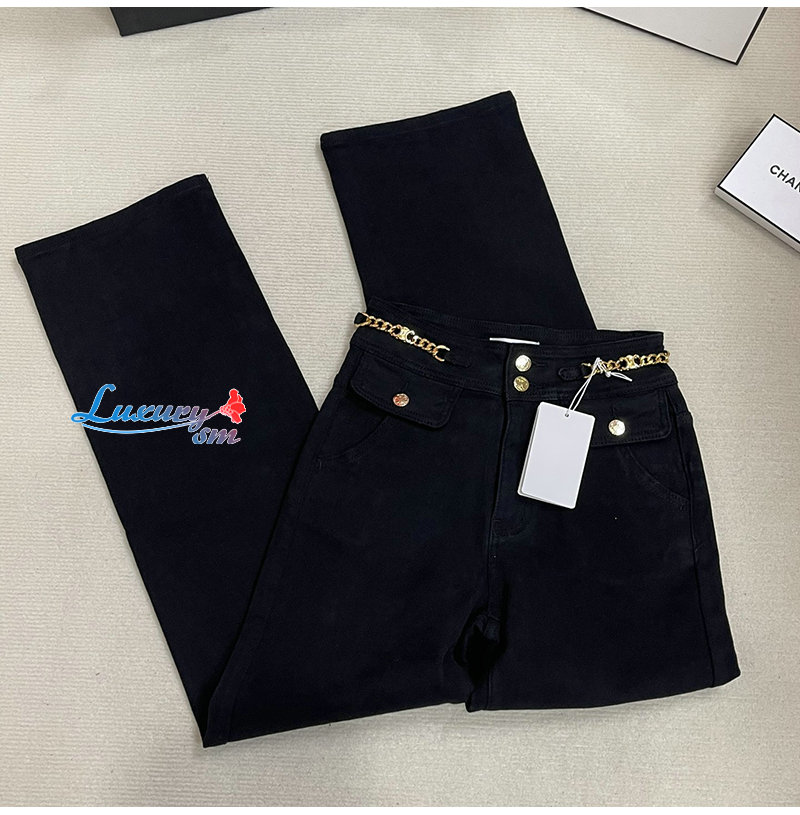 CELINE-12163 셀린느 블랙 메탈 체인 장식 청바지 여성용