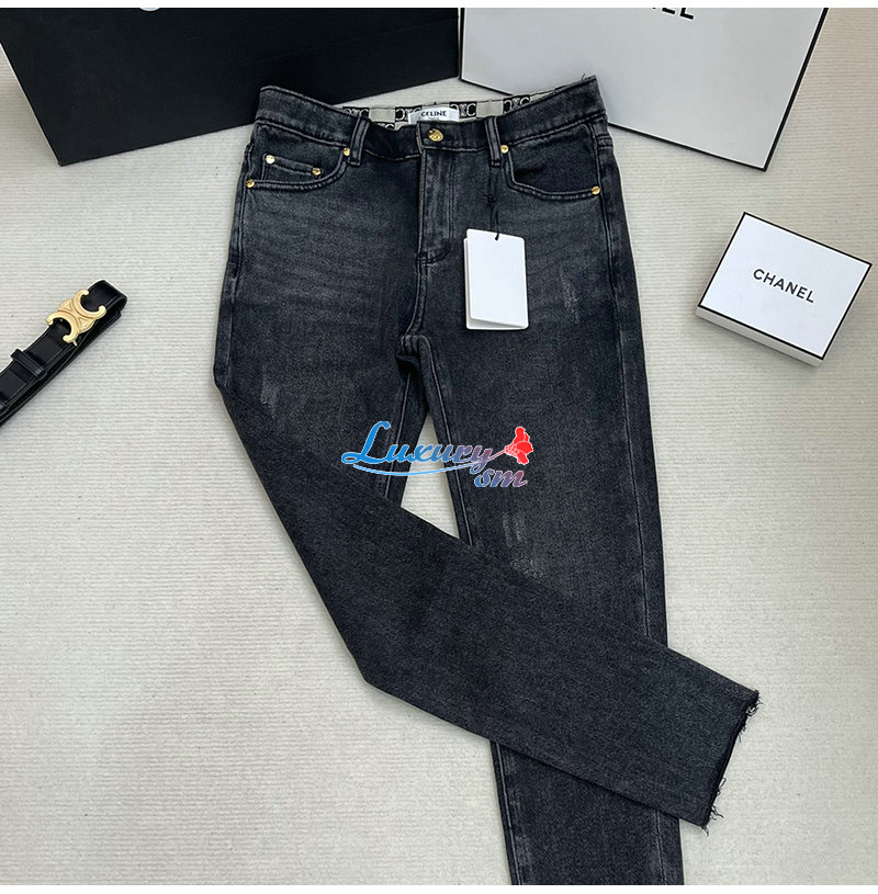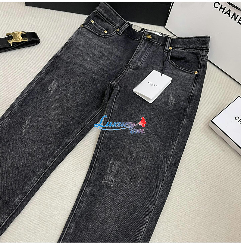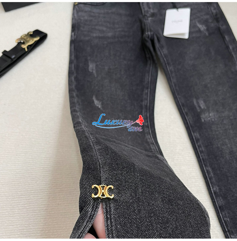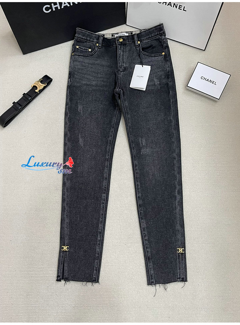 CELINE-12165 셀린느 다크 그레이 메탈 로고 장식 청바지 여성용