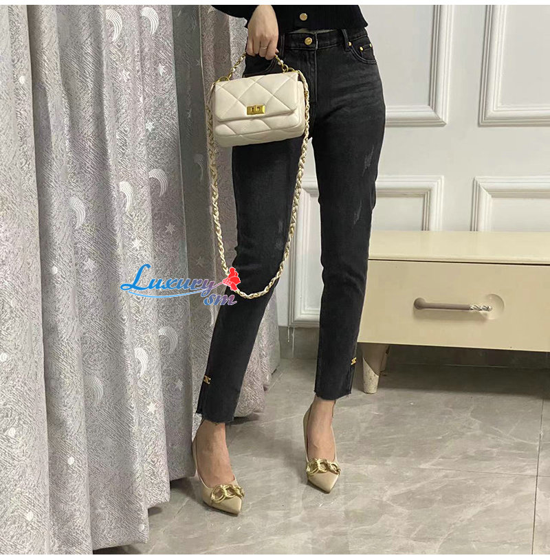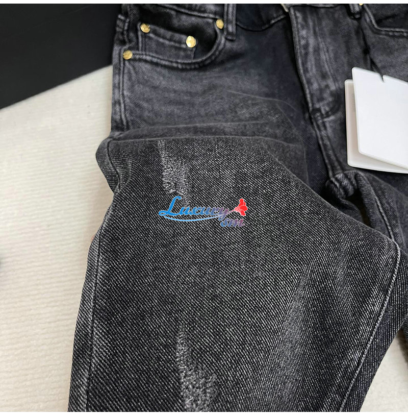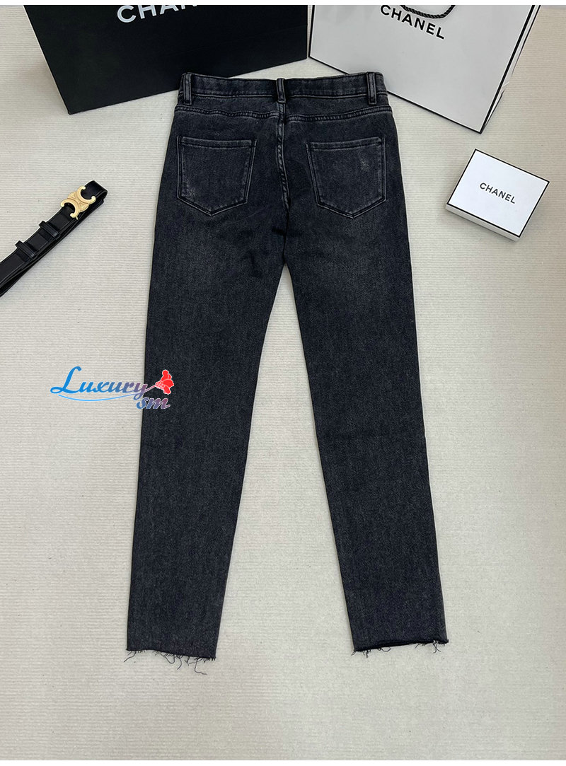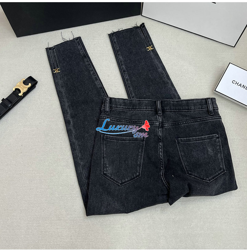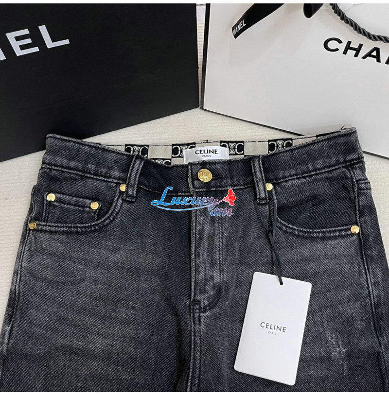 CELINE-12165 셀린느 다크 그레이 메탈 로고 장식 청바지 여성용