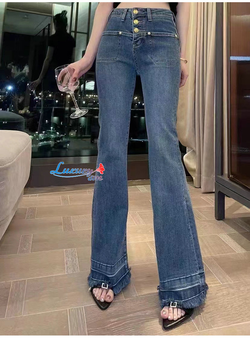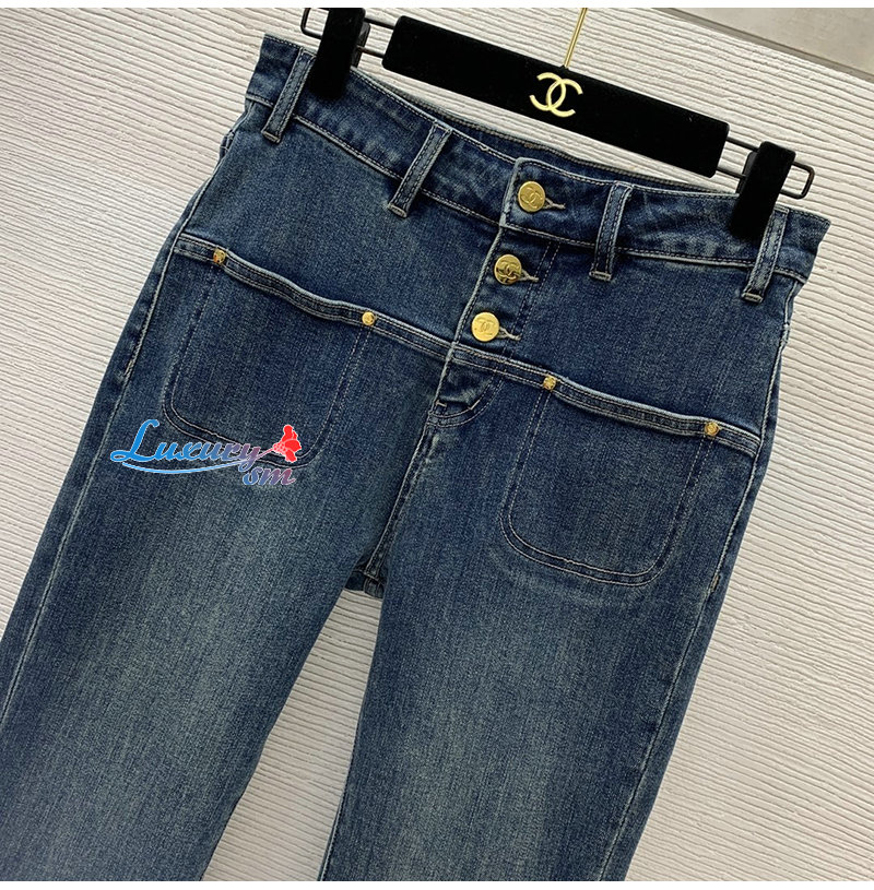 CHANEL-01174 샤넬 블루 트리플 버클 청바지 여성용