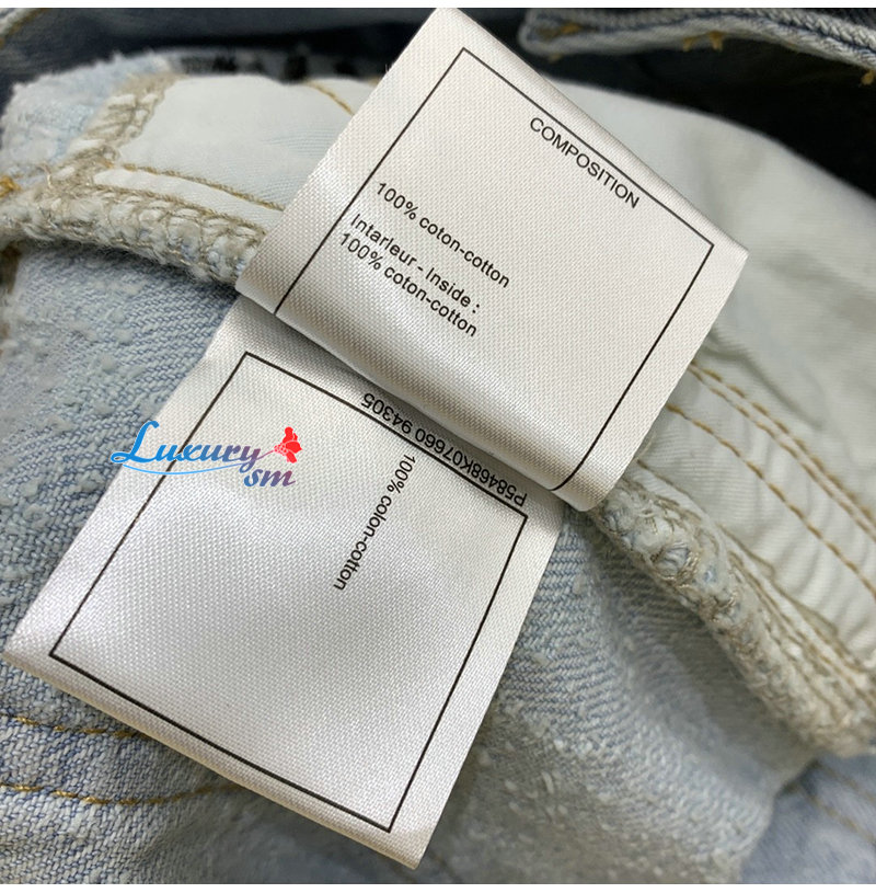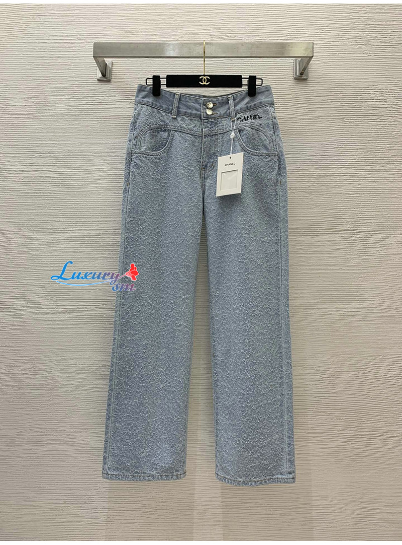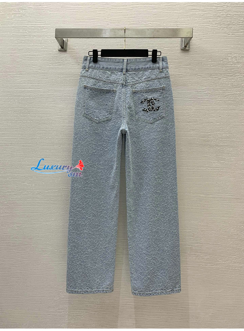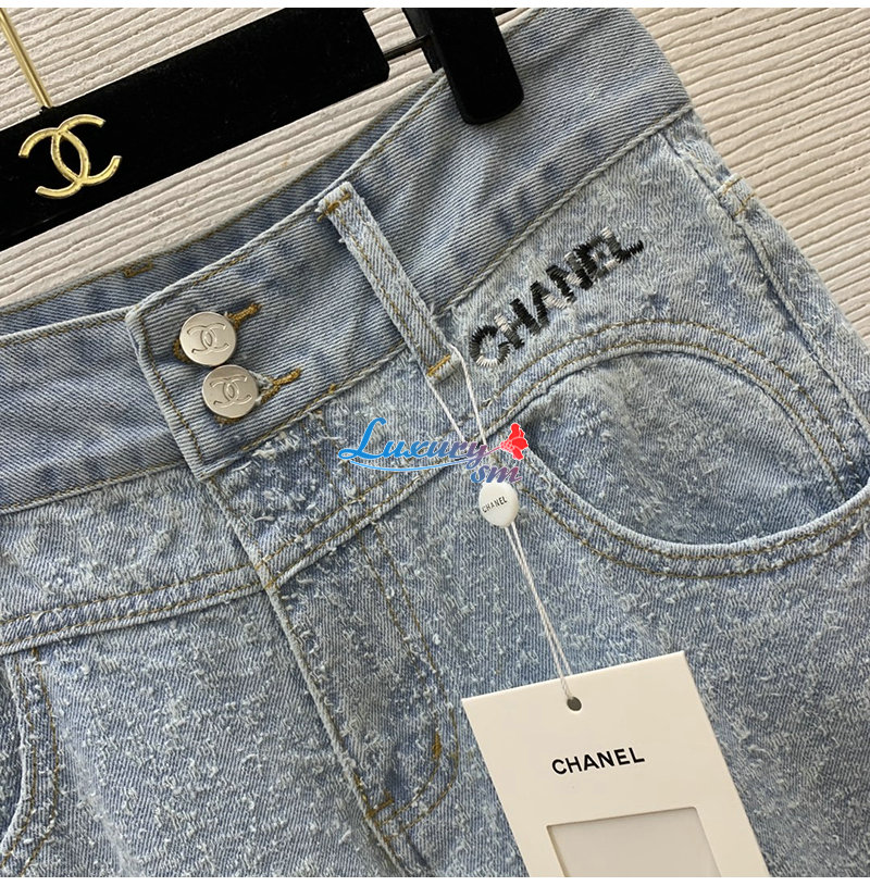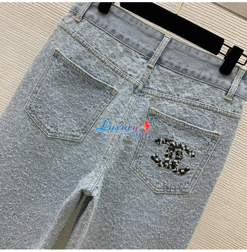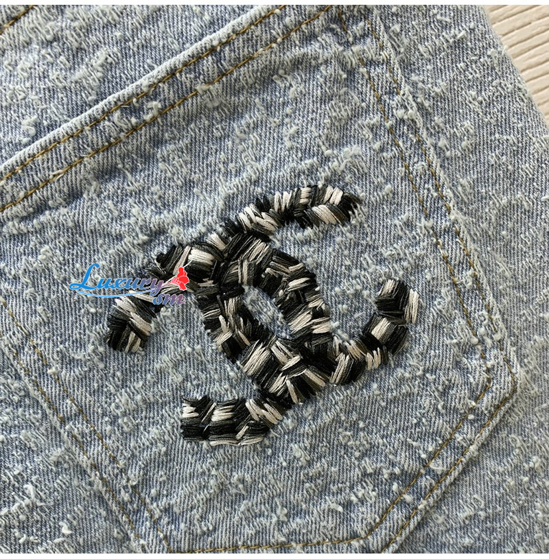 CHANEL-01175 샤넬 라이트 블루 CC 로고 장식 청바지 여성용