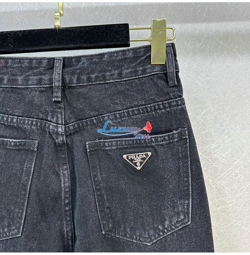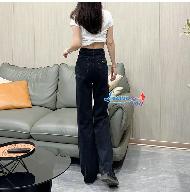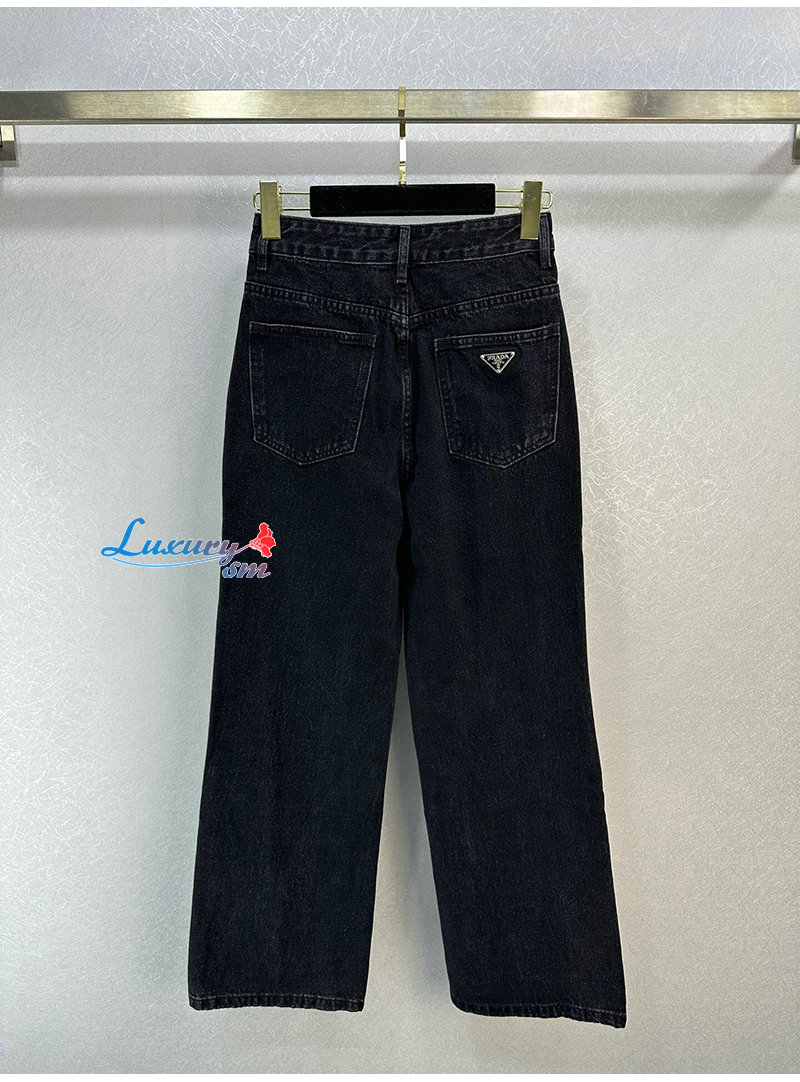 PRADA-01176 프라다 다크 그레이 트라이앵글 로고 청바지 여성용