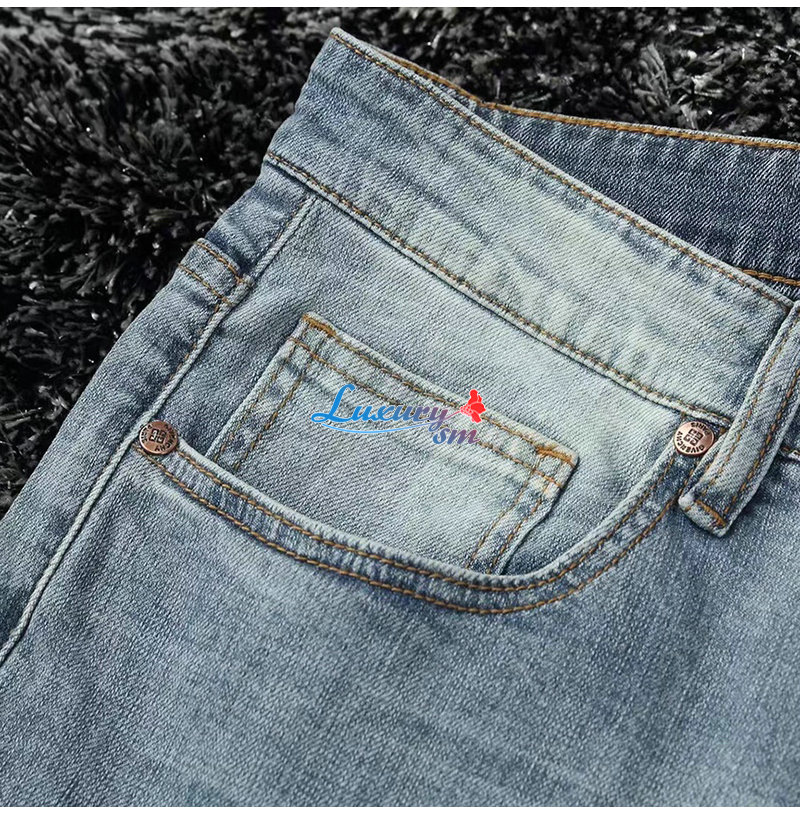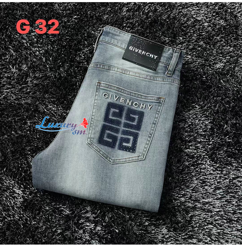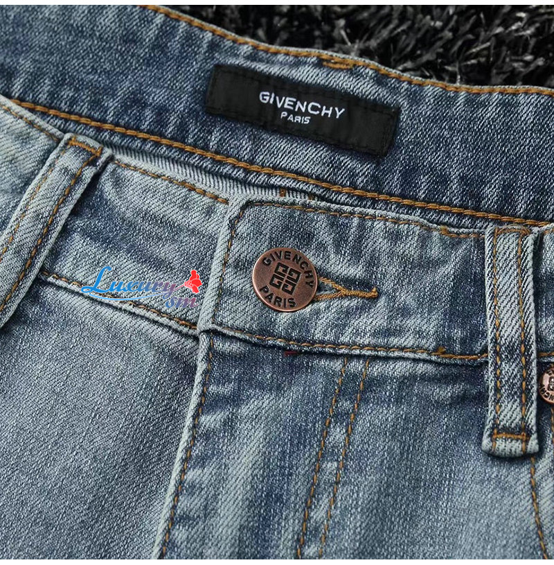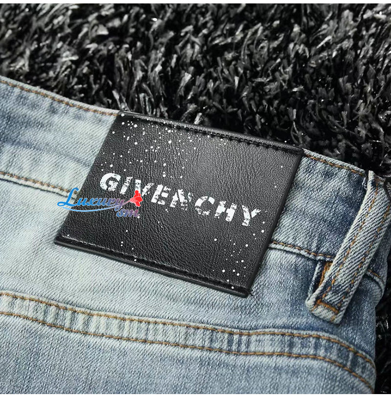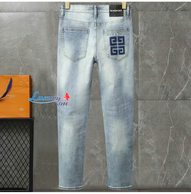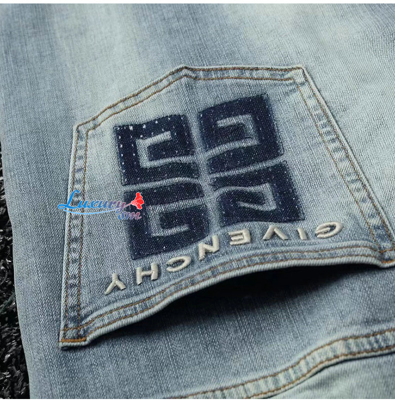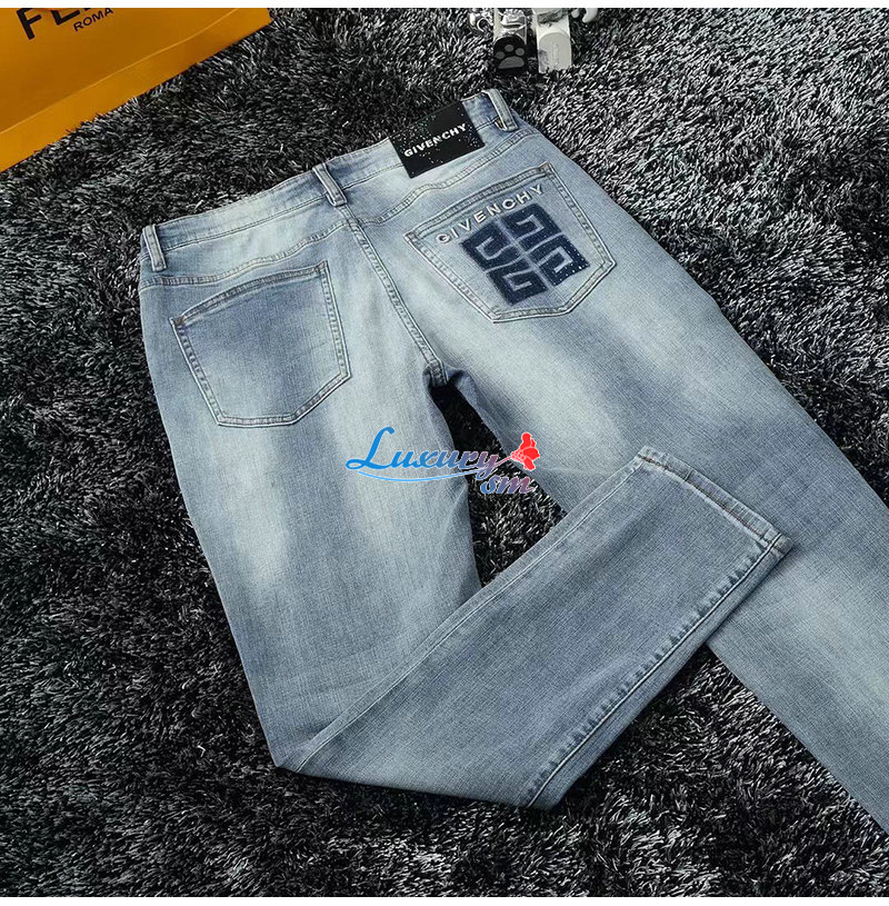 GIVENCHY-01187 지방시 라이트 블루 4G 로고 장식 청바지 남성용