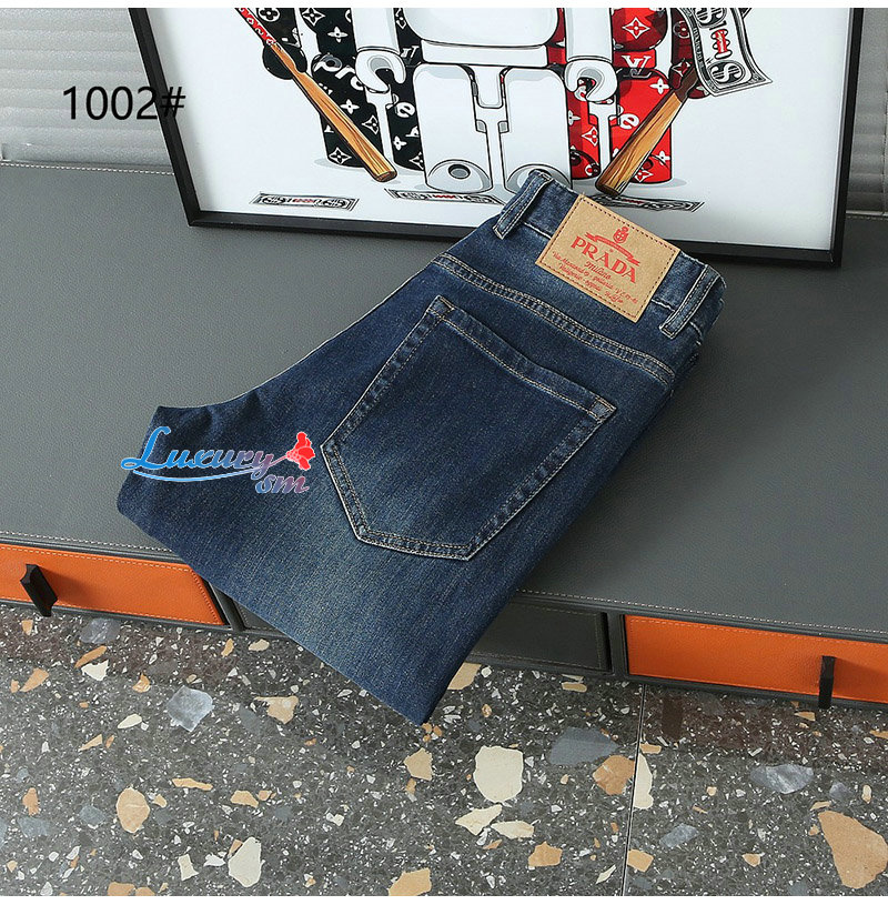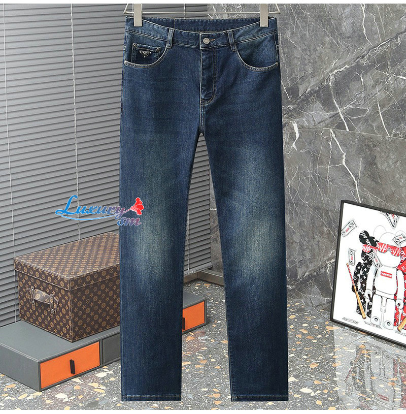 PRADA-02281 프라다 블루 트라이앵글 로고 청바지 남성용