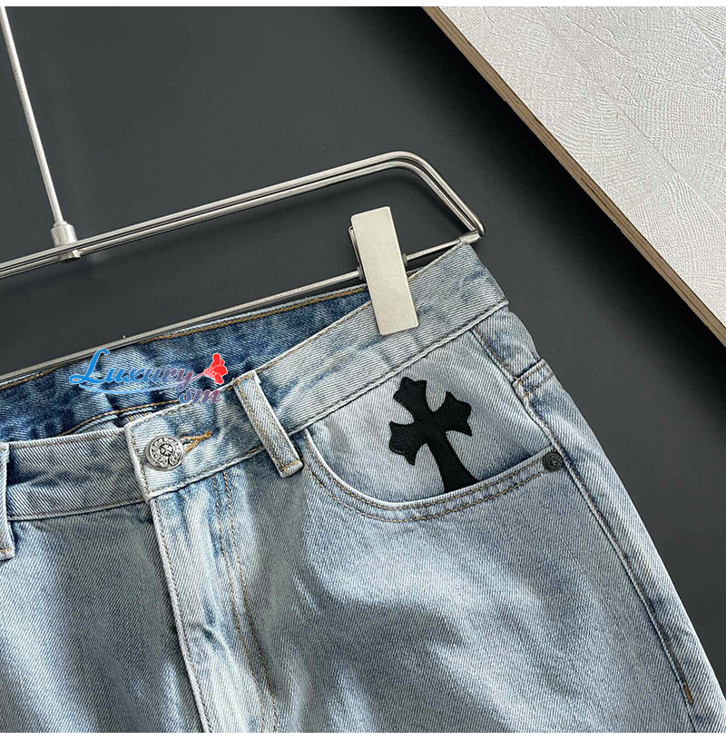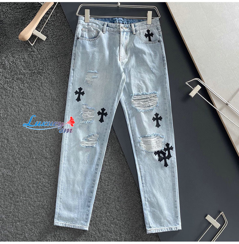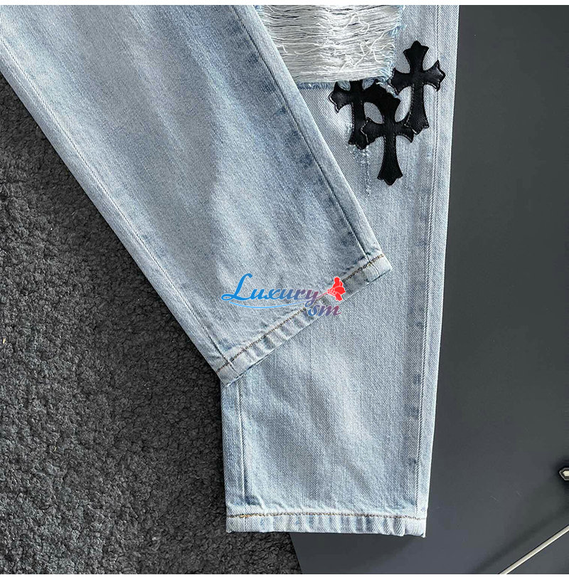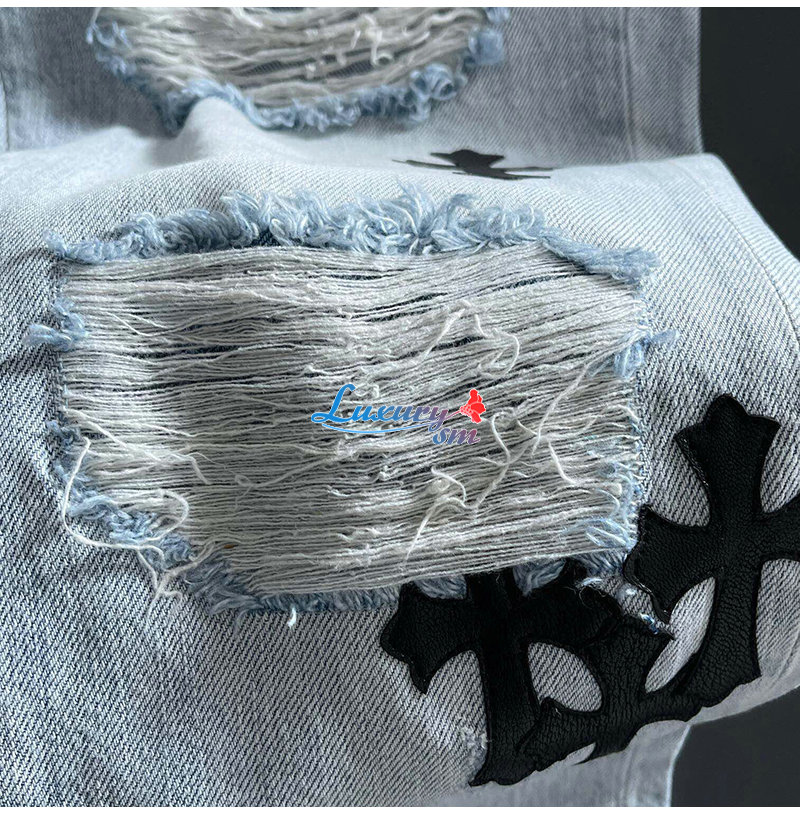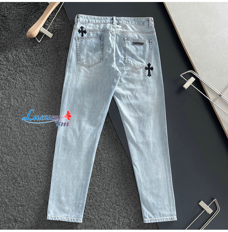 CHROMEHEARTS-03288 크롬하츠 라이트 블루 아플리케 장식 청바지 남성용