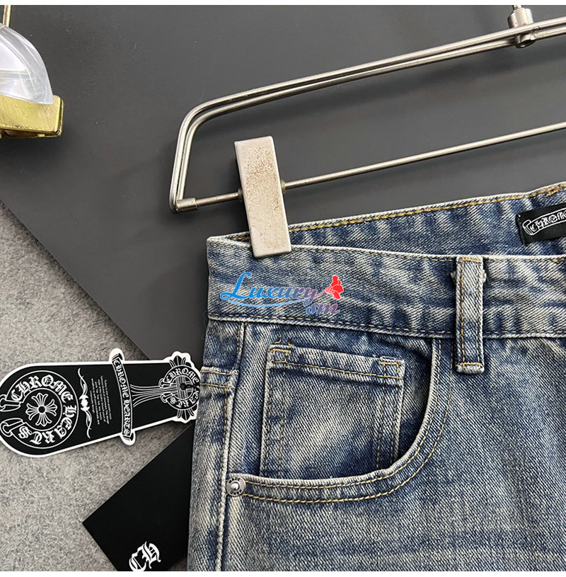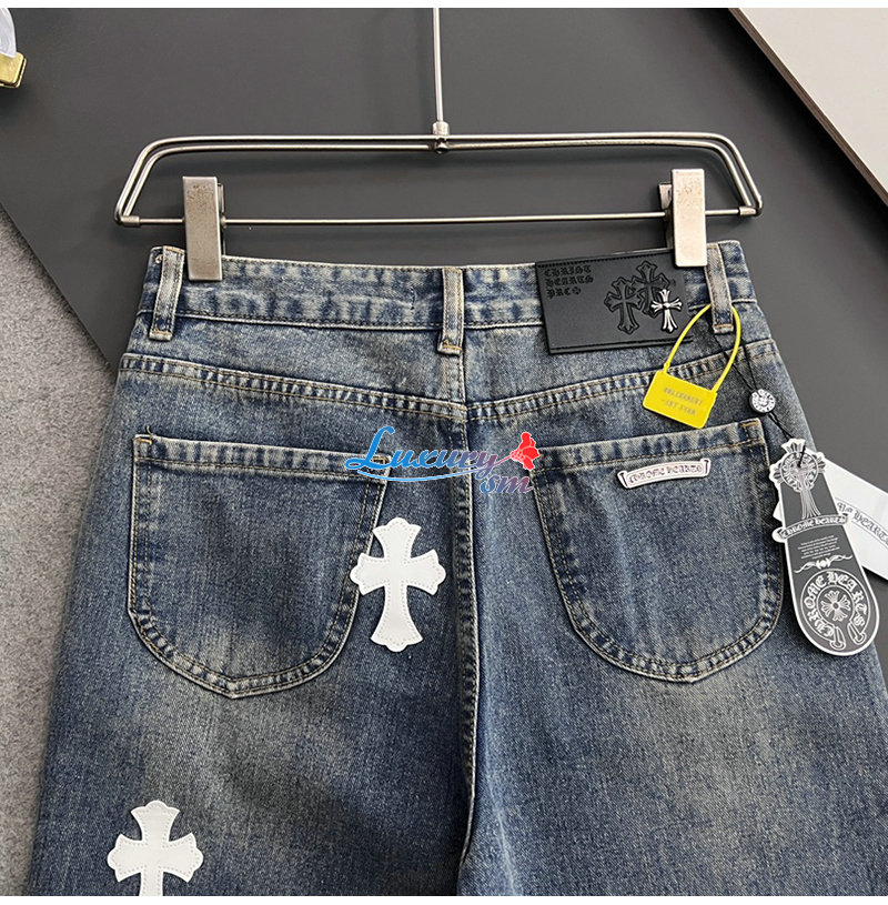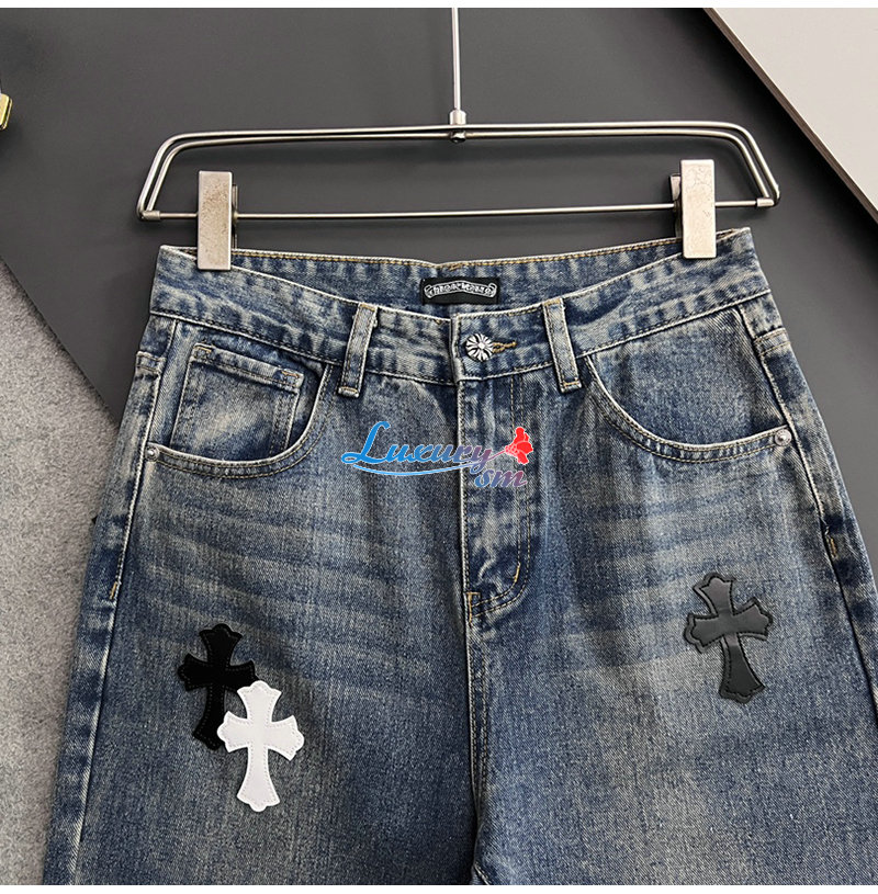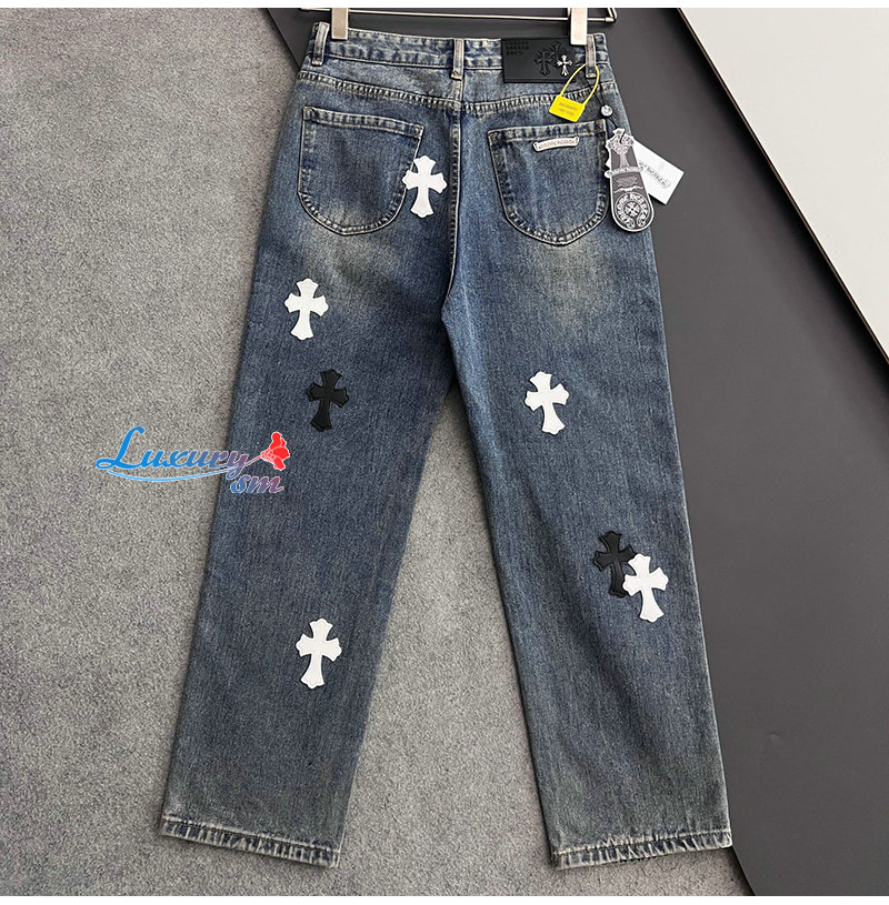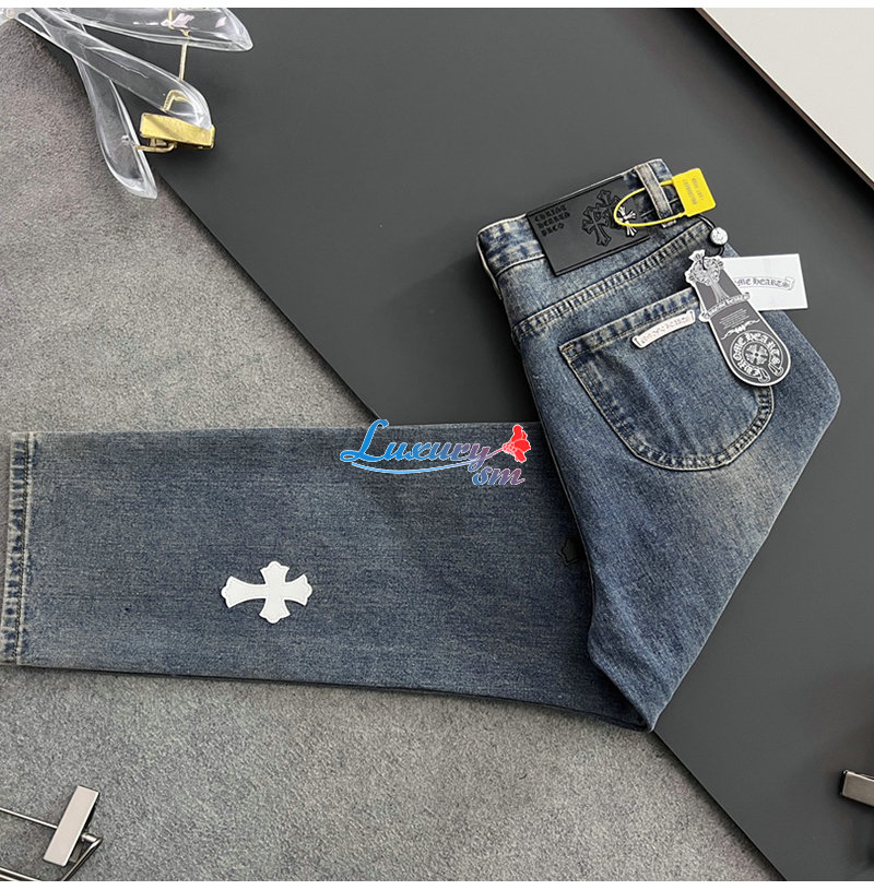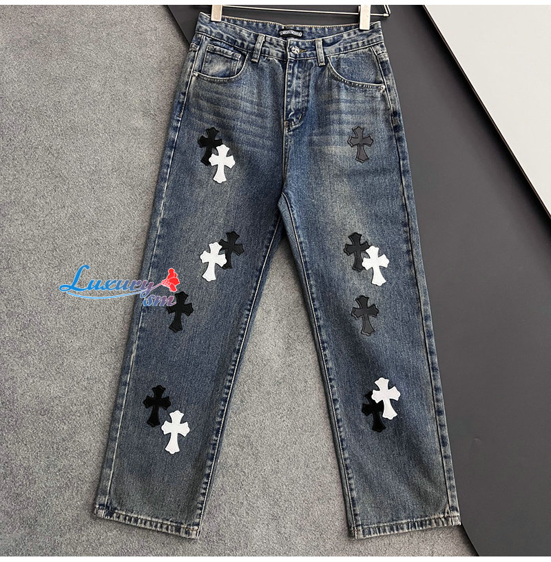 CHROMEHEARTS-04291 크롬하츠 블루 십자가 아플리케 장식 청바지 남성용