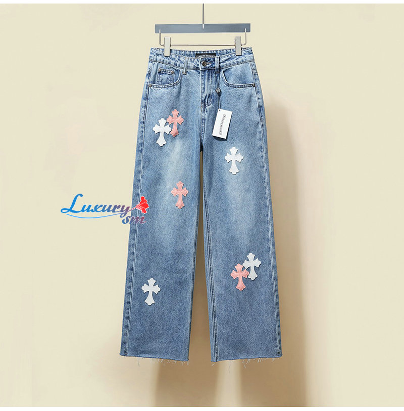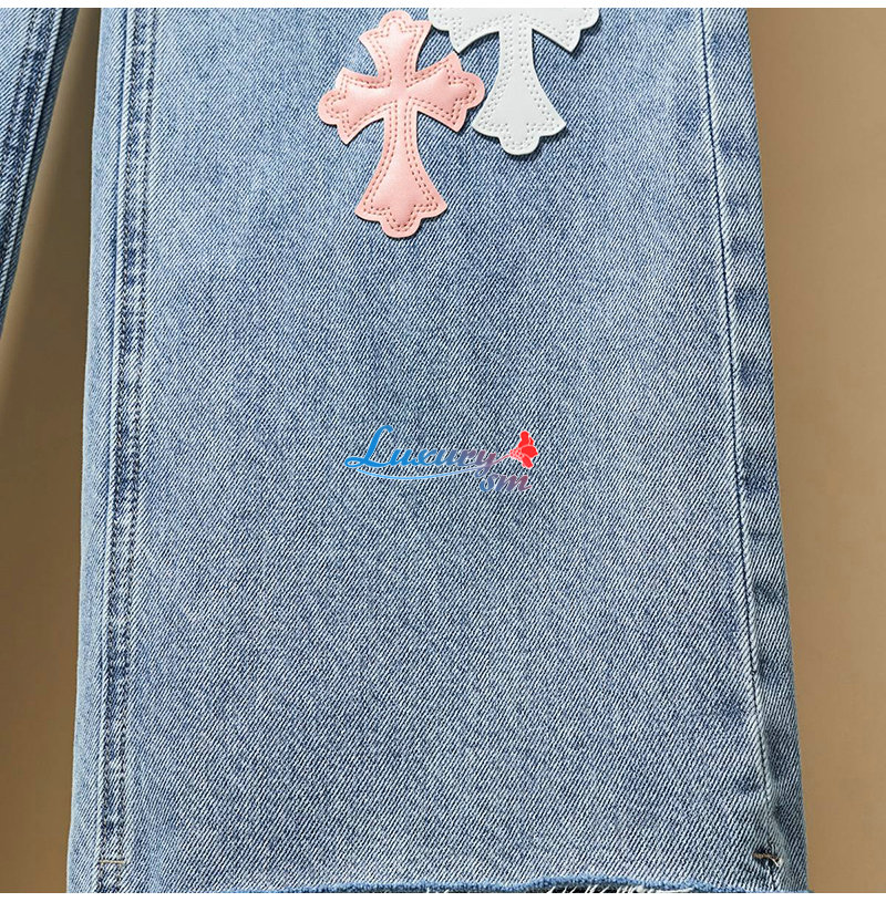 CHROMEHEARTS-06131 크롬하츠 블루 십자가 아플리케 장식 청바지 여성용