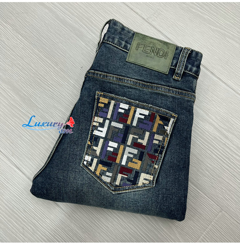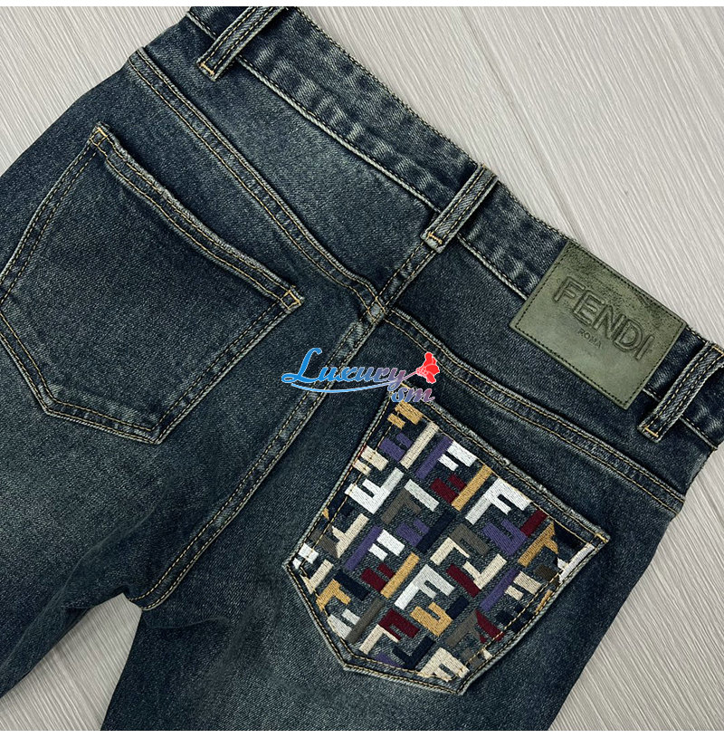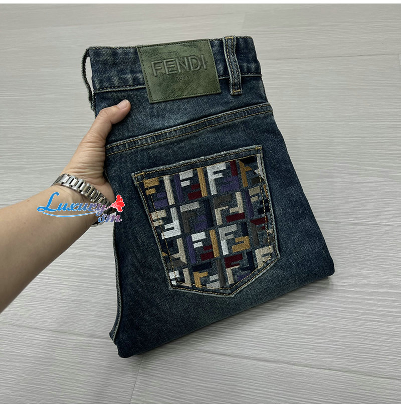 FENDI-101815 펜디 블루 더블 F 아플리케 장식 청바지 남성용