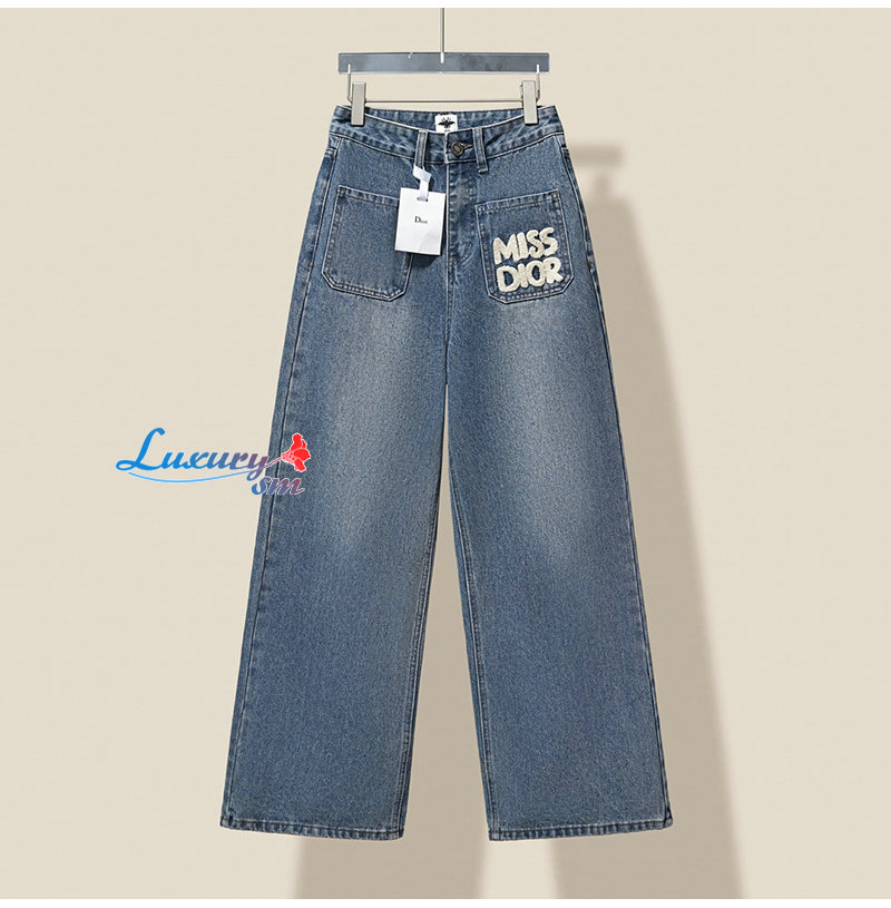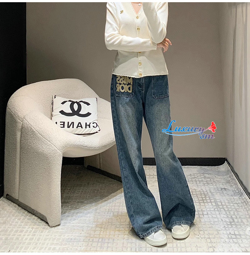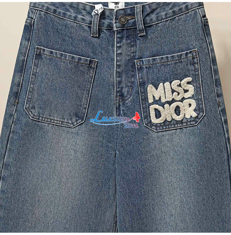 DIOR-112015 디올 블루 아플리케 장식 청바지 여성용