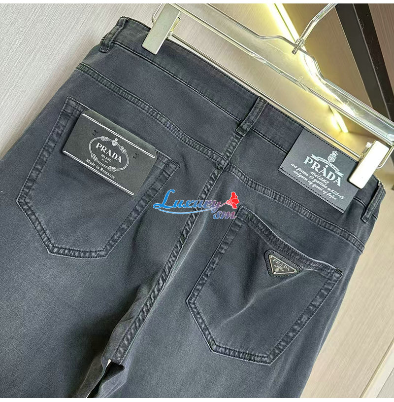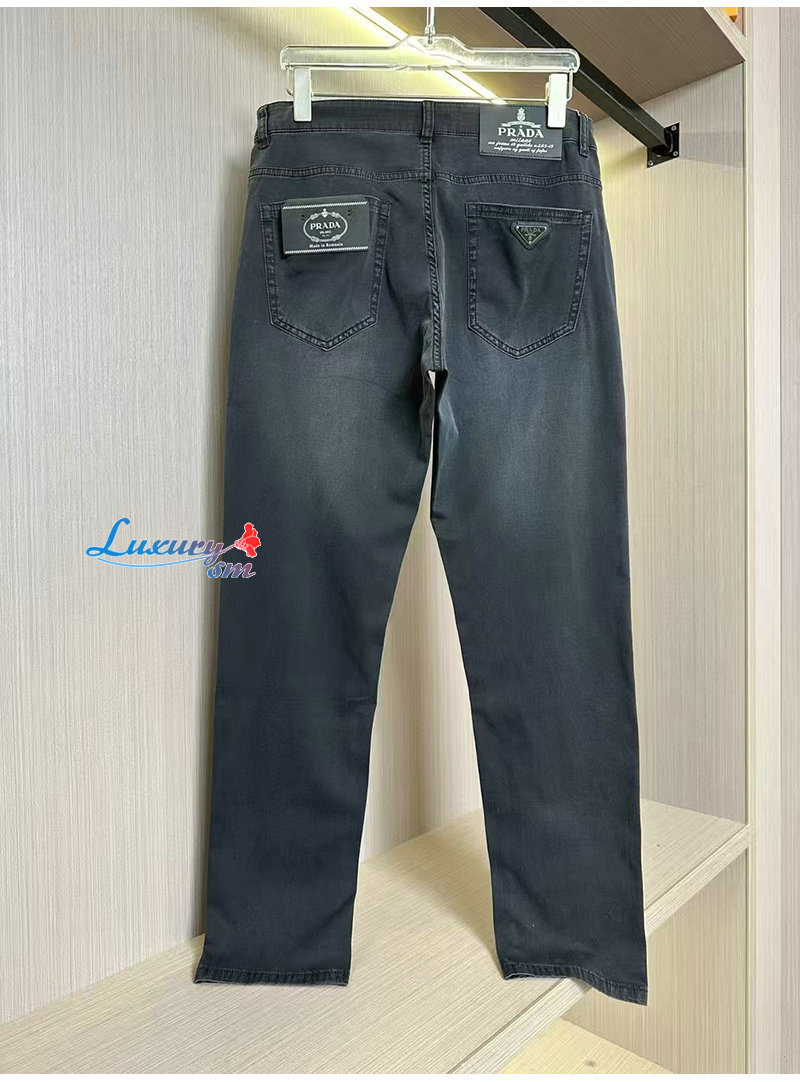 PRADA-021914 프라다 다크 그레이 트라이앵글 로고 청바지 남성용