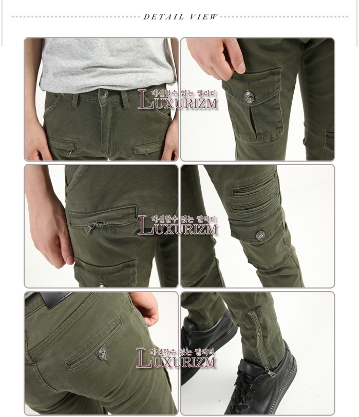 -피에르발망 사이드 입체포켓 밑단지퍼 카고 팬츠 카키