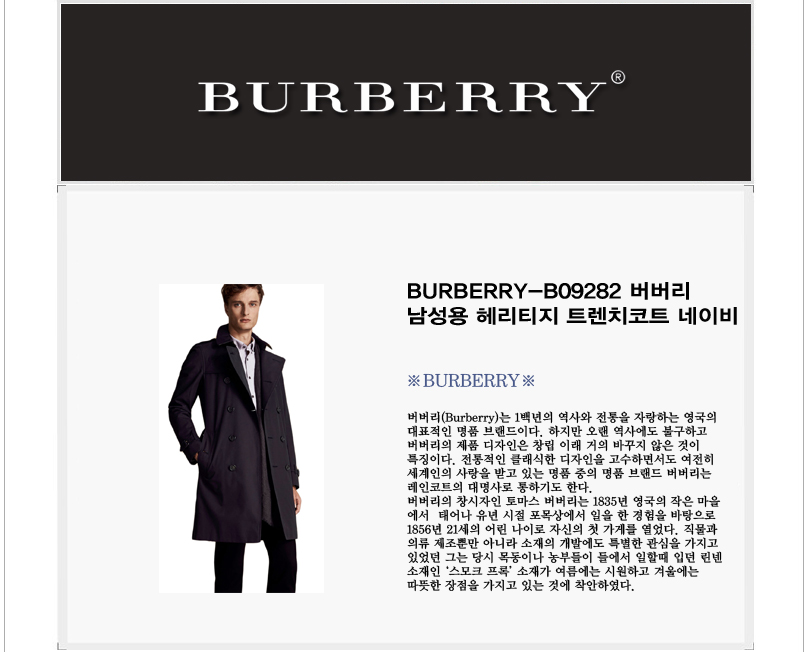 [스페셜오더]BURBERRY-B09282 버버리 남성용 헤리티지 트렌치코트 네이비