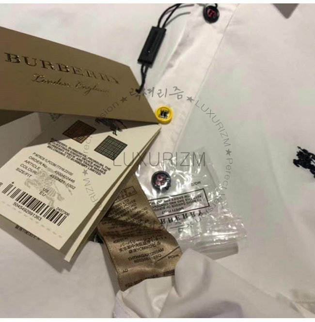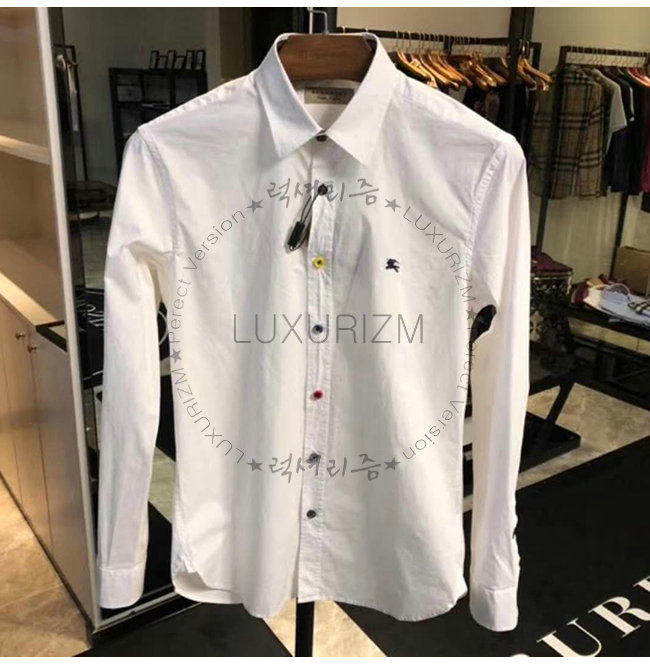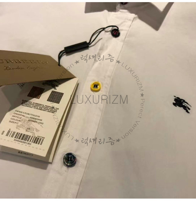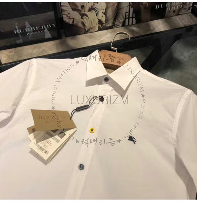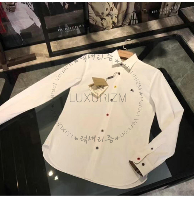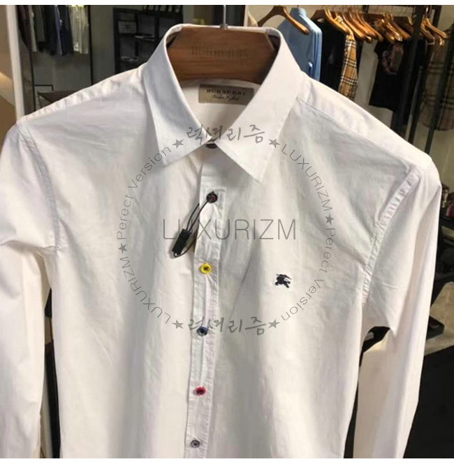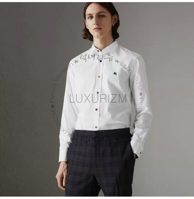 [스페셜오더]BURBERRY-80030831 버버리 컨트라스트 버튼 스트레치 화이트 코튼 셔츠