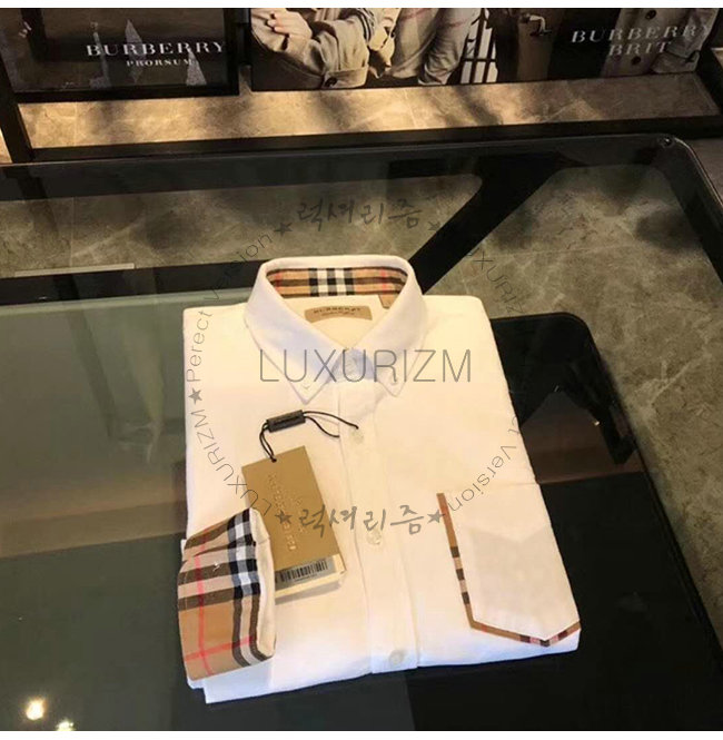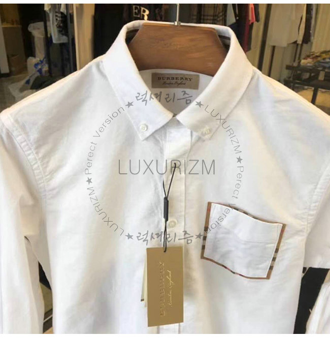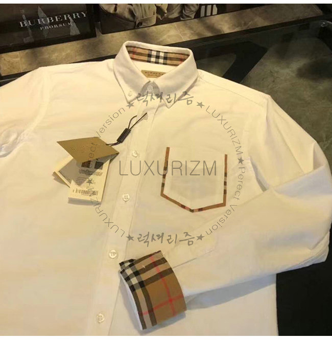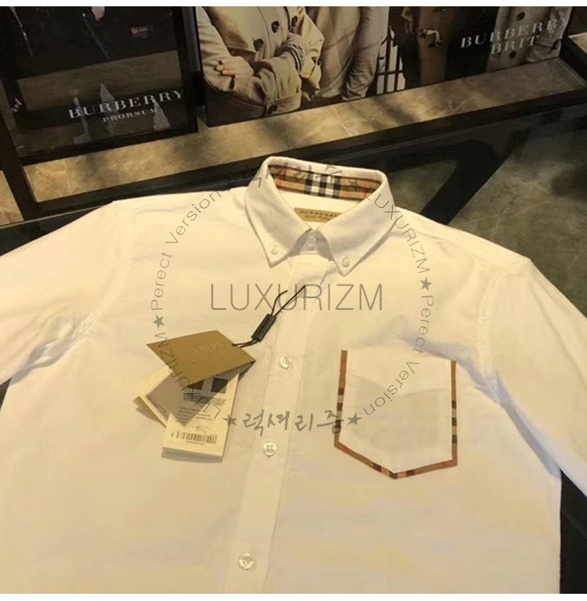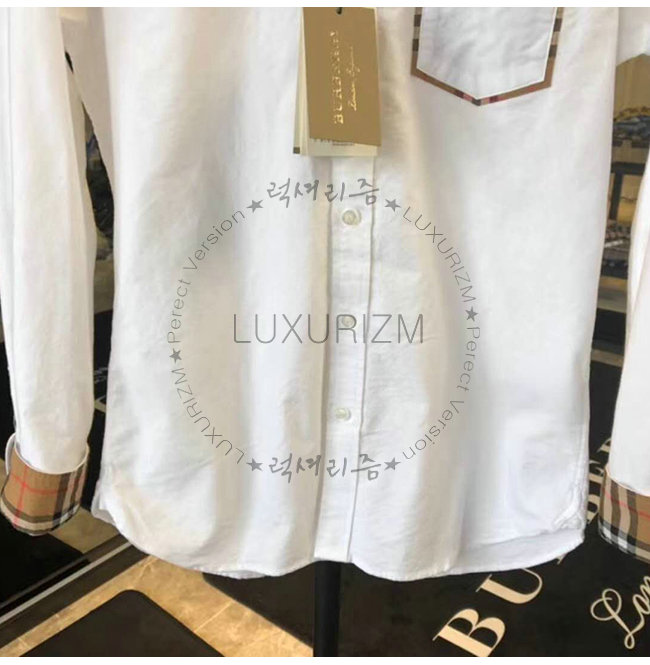 [스페셜오더]BURBERRY-80030881 버버리 체크 디테일 코튼 화이트 옥스퍼드 셔츠