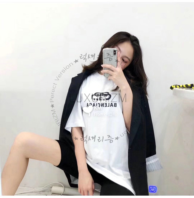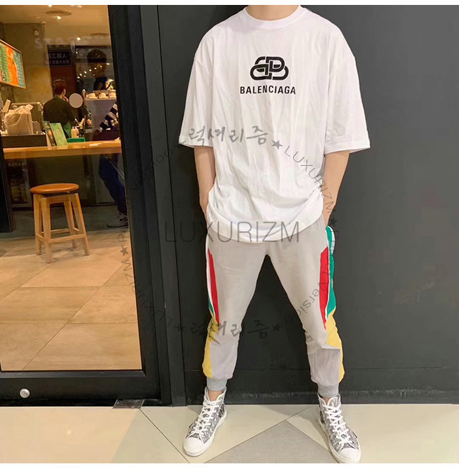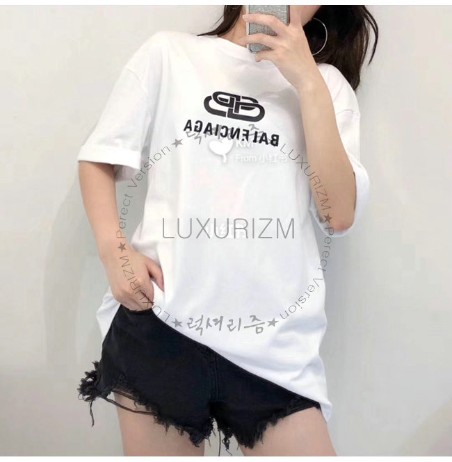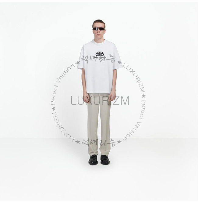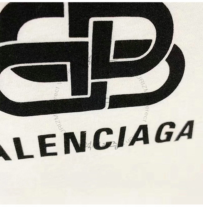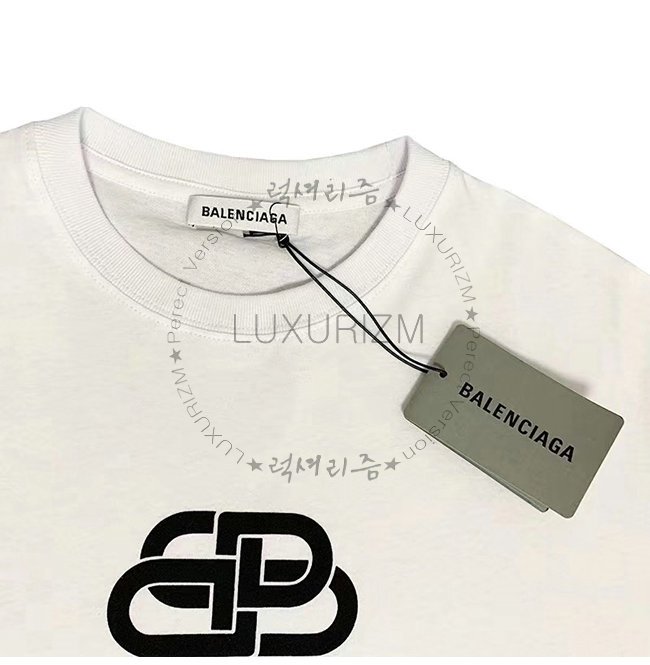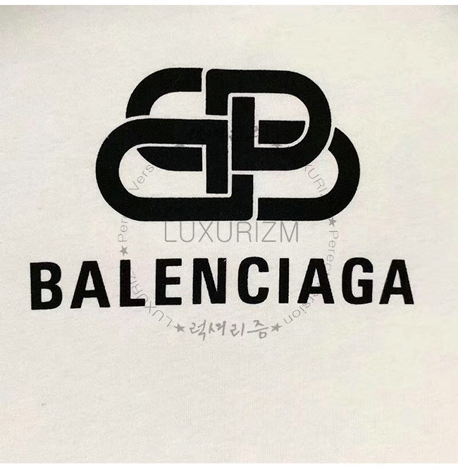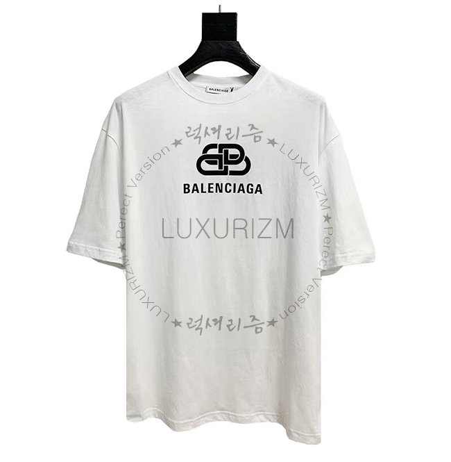 BALENCIAGA-570803 발렌시아가 화이트 코튼 BB 로고 프린트 티셔츠