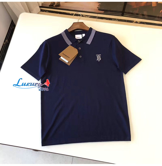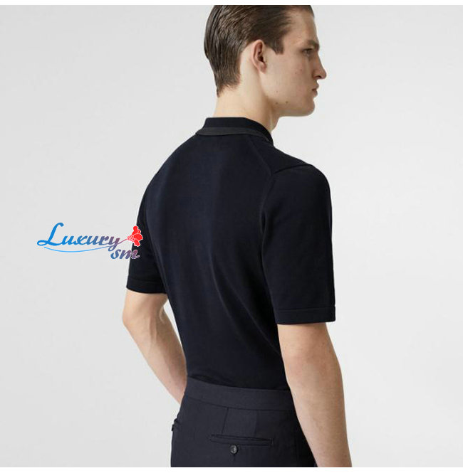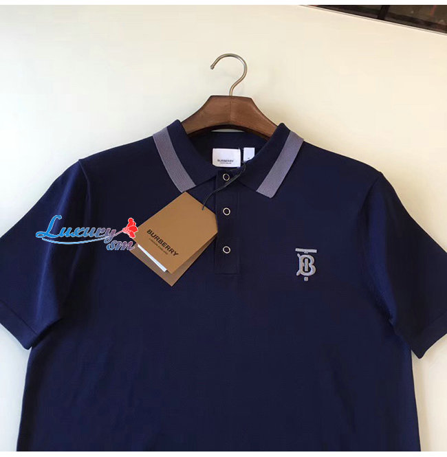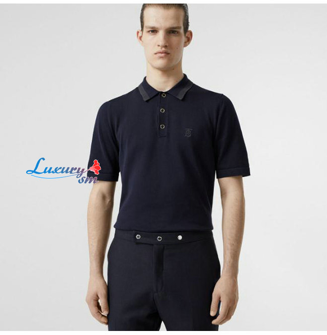 BURBERRY-80169701 버버리 네이비 모노그램 모티프 코튼 폴로 셔츠
