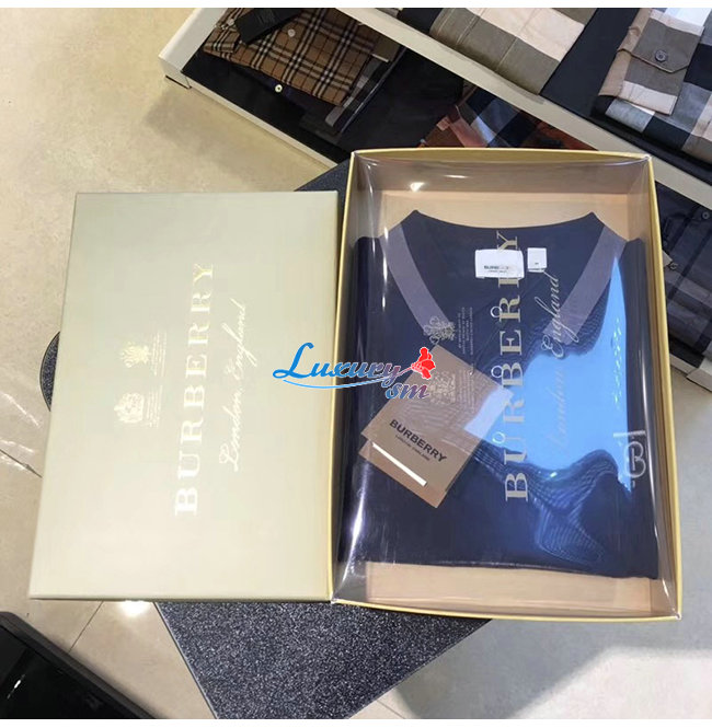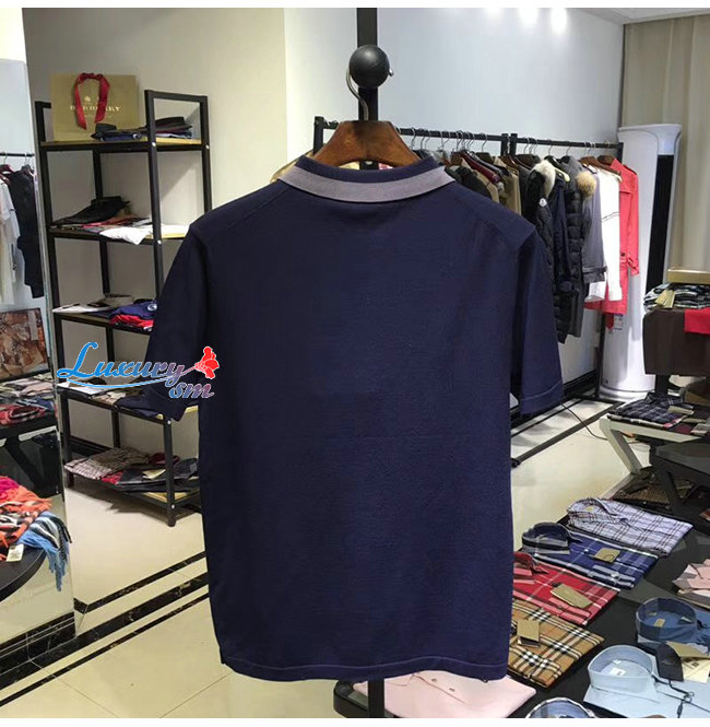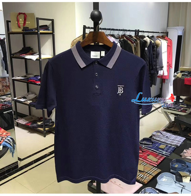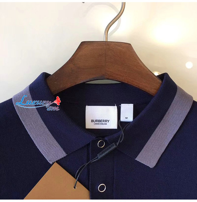 니트 면 소재의 폴로셔츠. 자수로 연출된 버버리