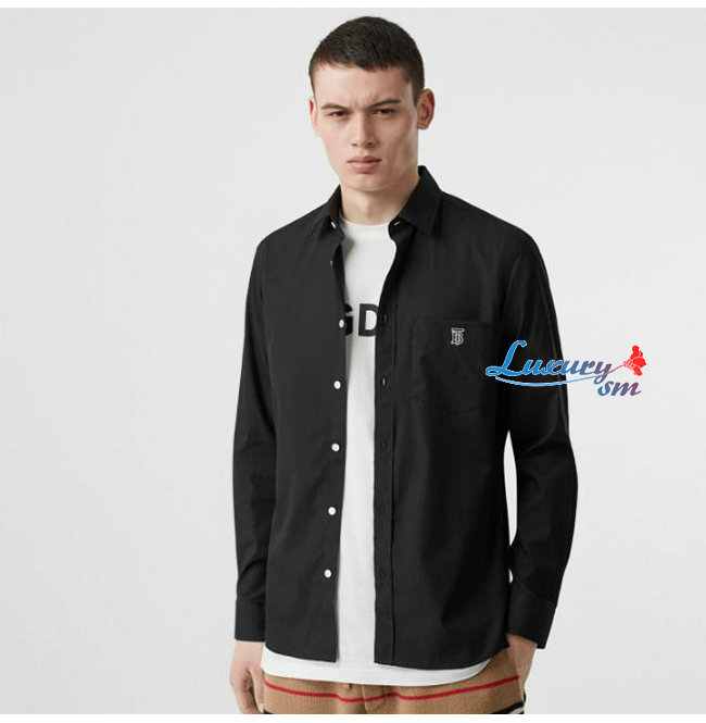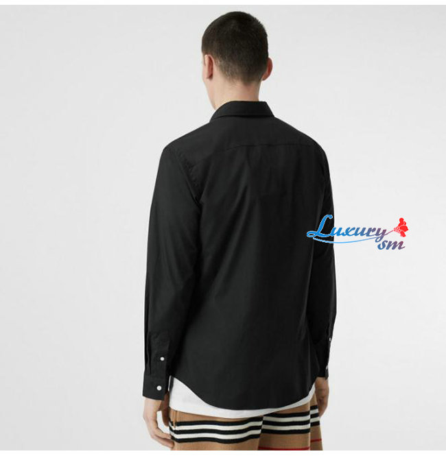 BURBERRY-80113691 버버리 블랙 모노그램 모티프 스트레치 코튼 포플린 셔츠