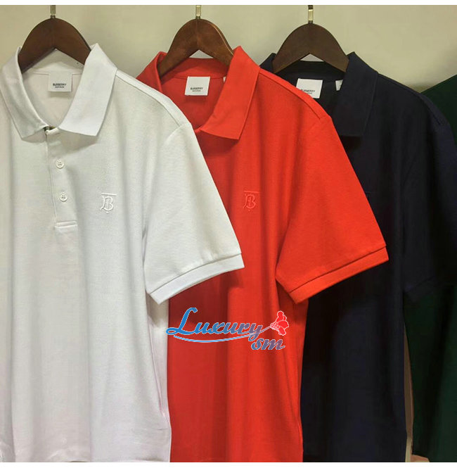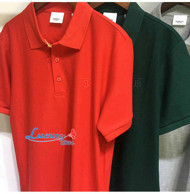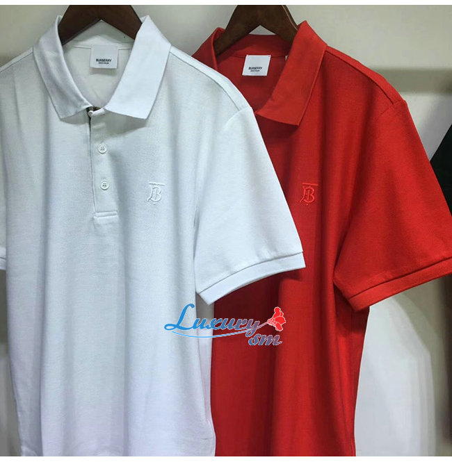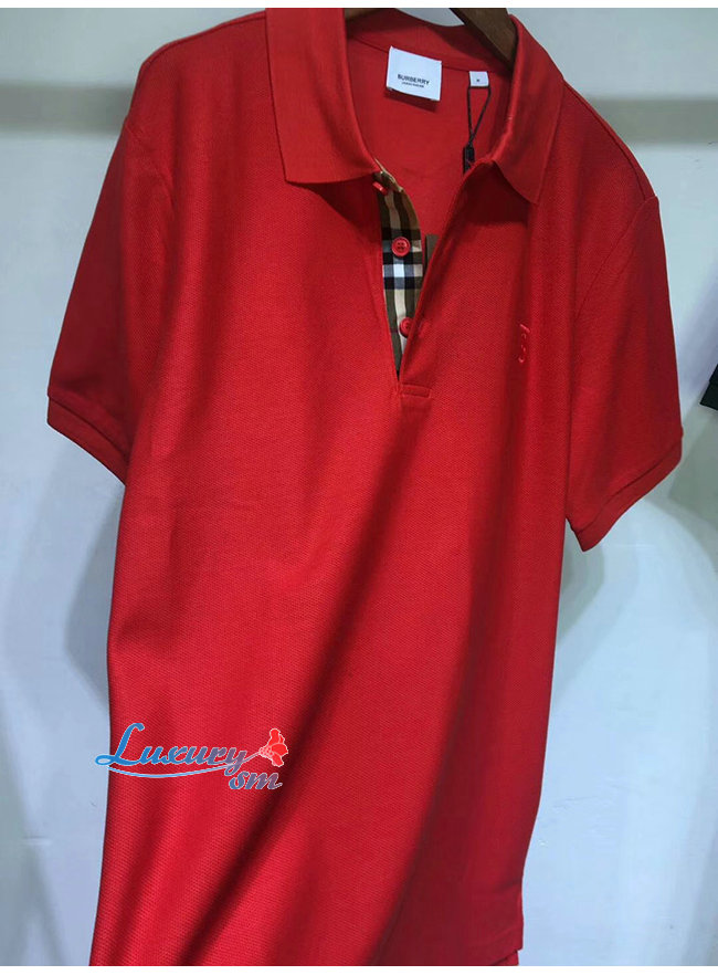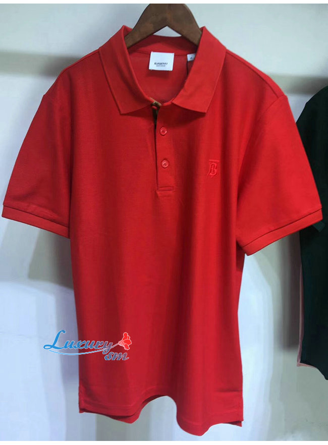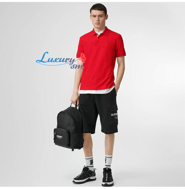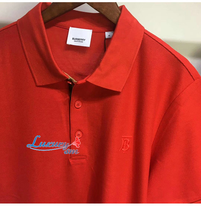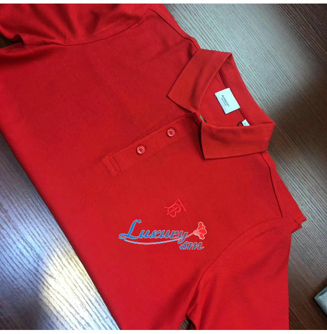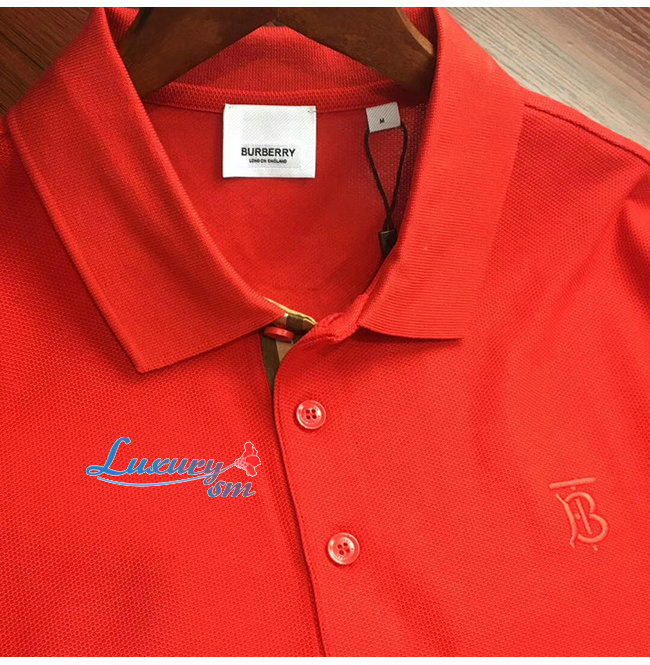BURBERRY-80143171 버버리 레드 코튼 모노그램 모티프 피케 폴로셔츠