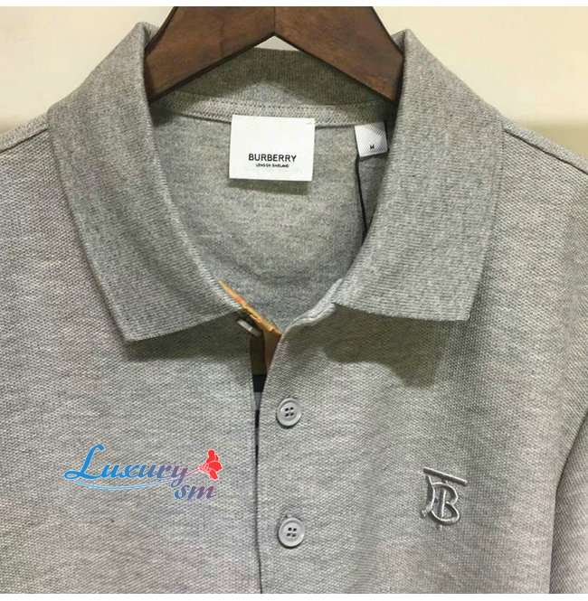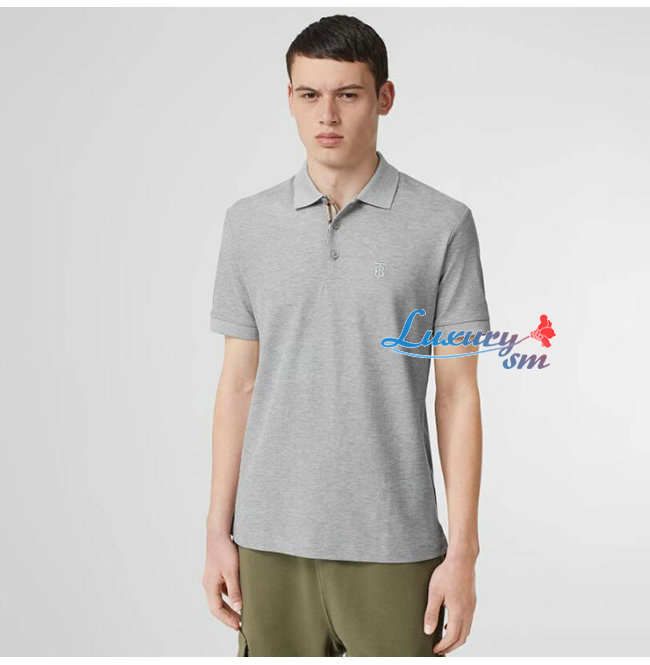 BURBERRY-80140061 버버리 그레이 코튼 모노그램 모티프 피케 폴로셔츠