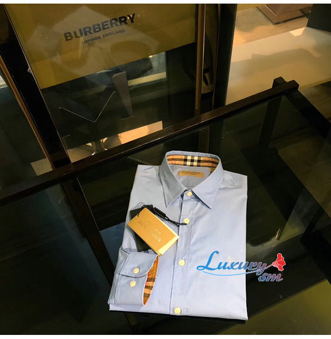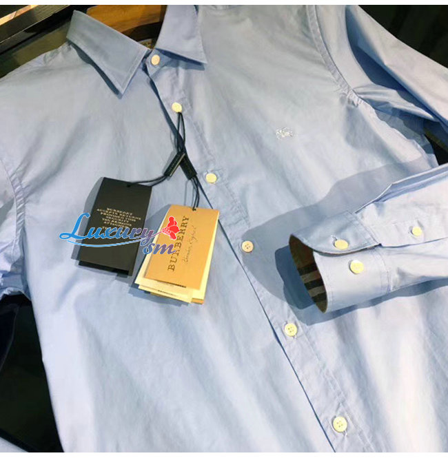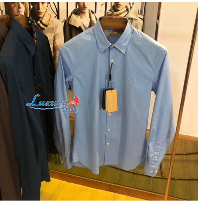 BURBERRY-80087041 버버리 페일 블루 코튼 스트레치 포플린 셔츠