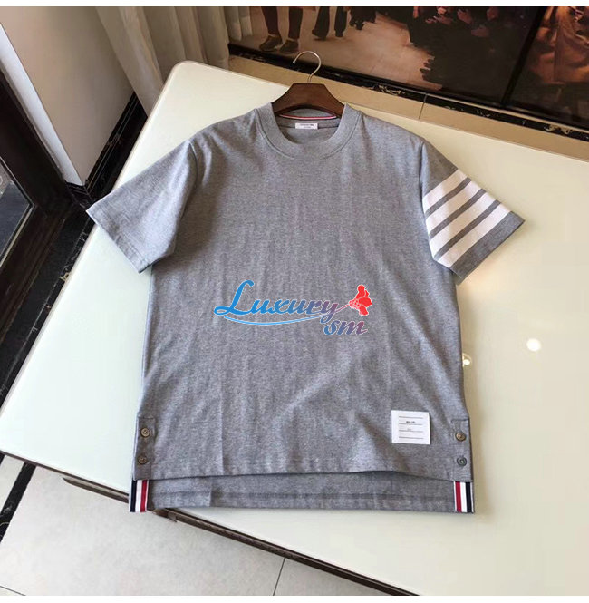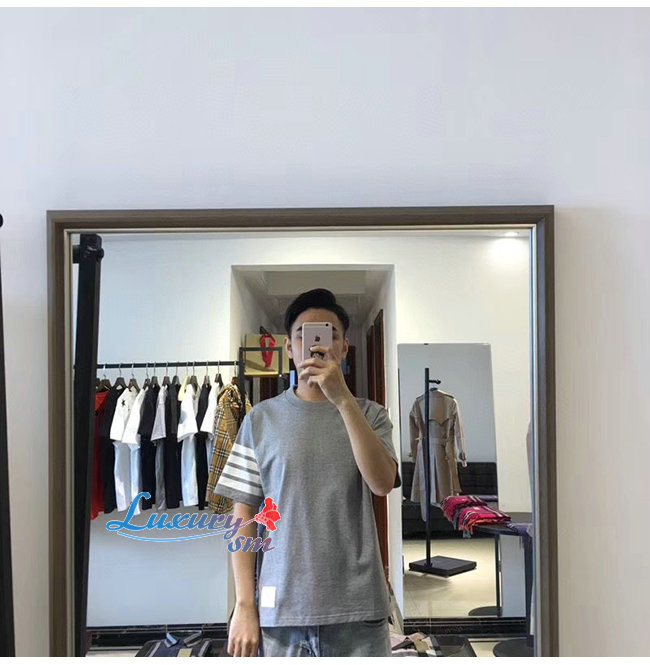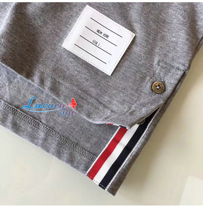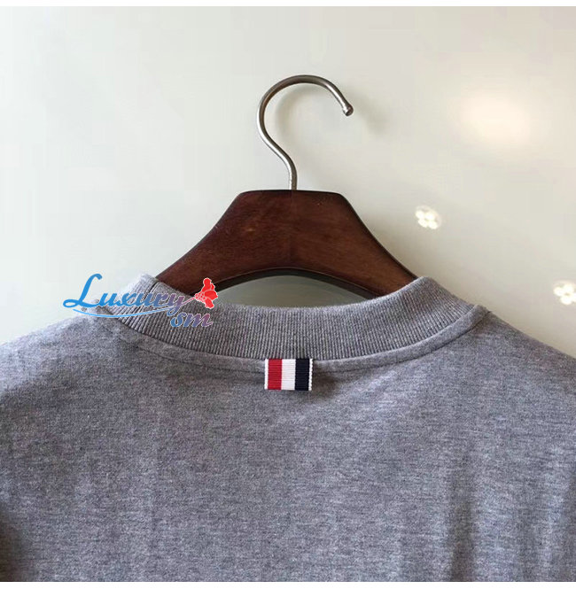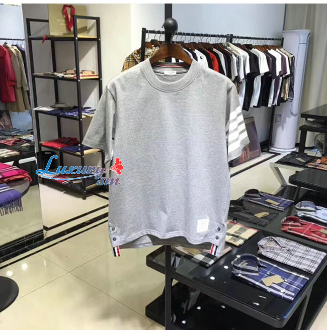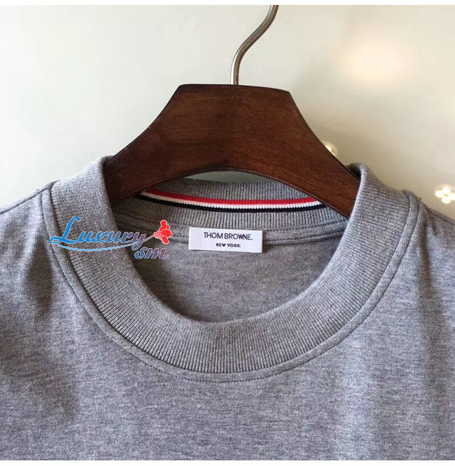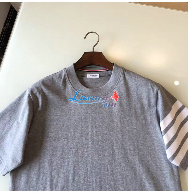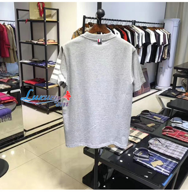 THOM BROWNE-052712 톰 브라운 그레이 코튼 스트라이프 장식 티셔츠 남성용