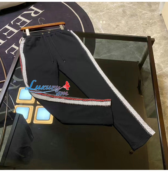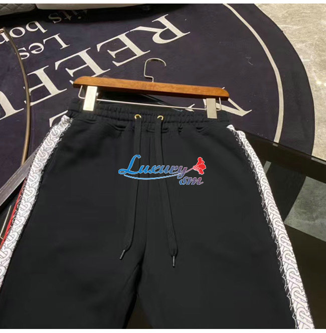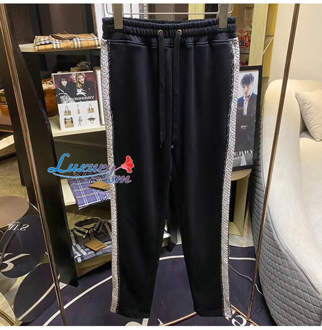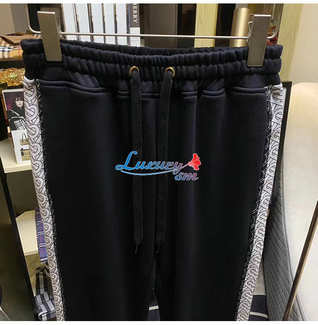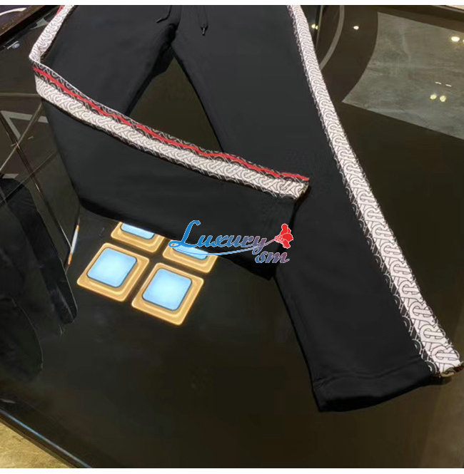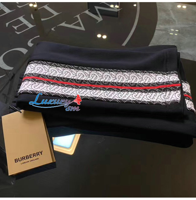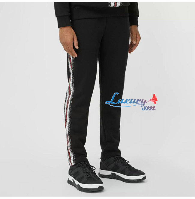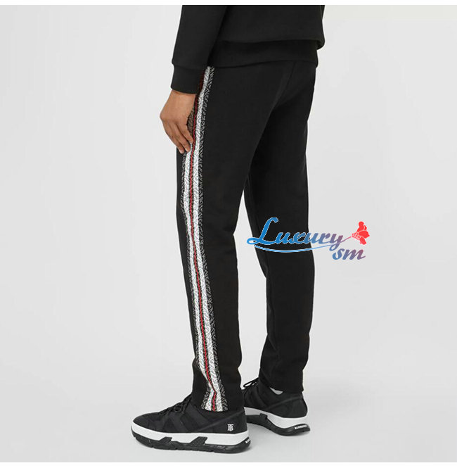 BURBERRY-80269411 버버리 블랙 모노그램 스트라이프 패널 코튼 트랙팬츠