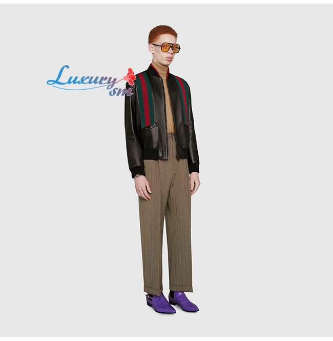 [스페셜오더]GUCCI-593757 1152 구찌 블랙 양가죽 Web 봄버 쟈켓