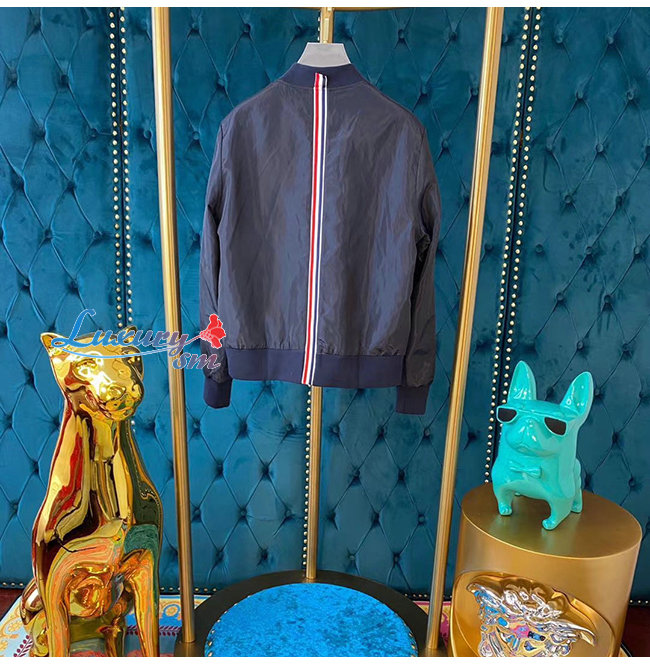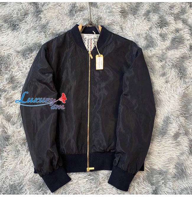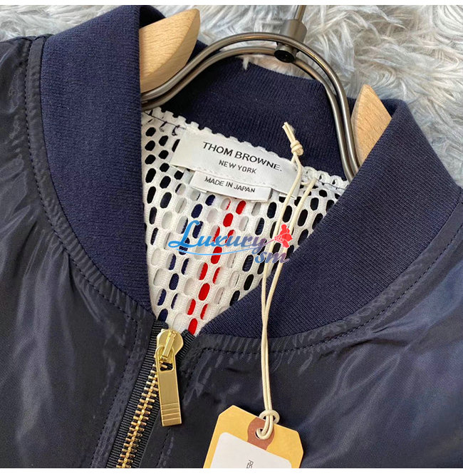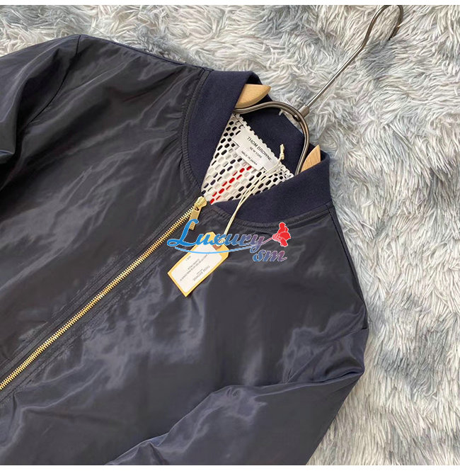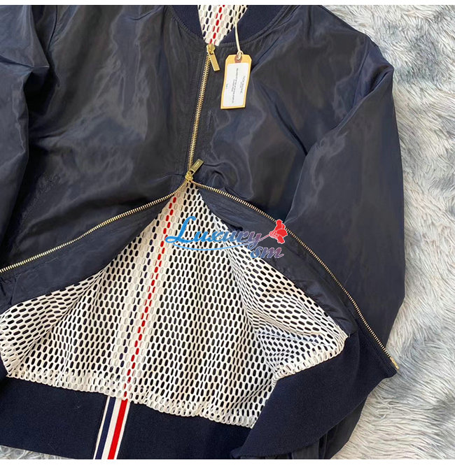THOM BROWNE-09205 톰 브라운 네이비 나일론 바람막이 봄버 쟈켓 남성용