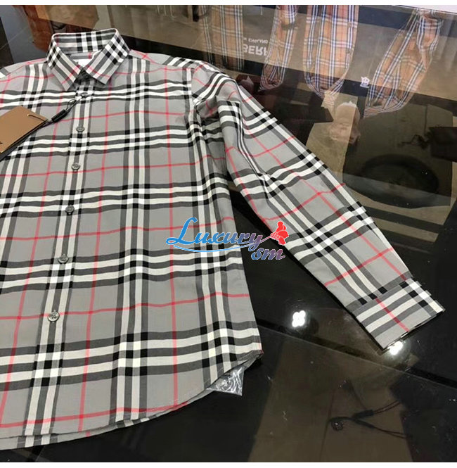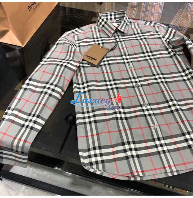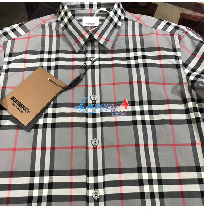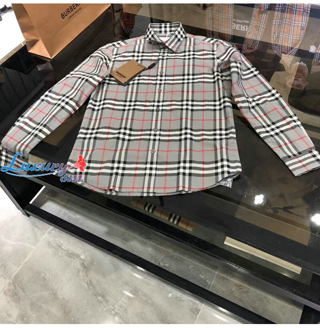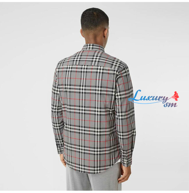 BURBERRY-80288861 버버리 스톰 그레이 멜란지 체크 코튼 포플린 셔츠