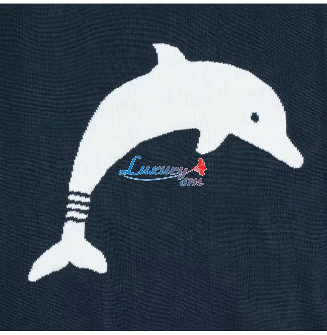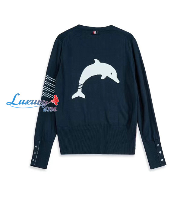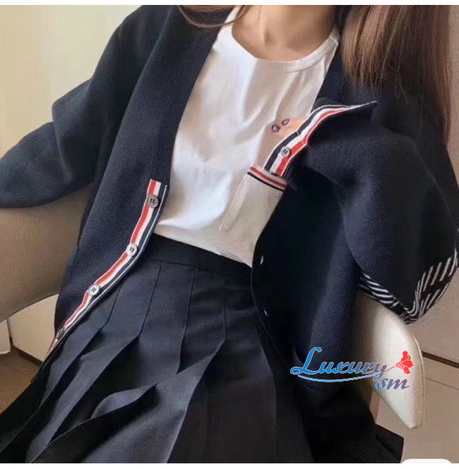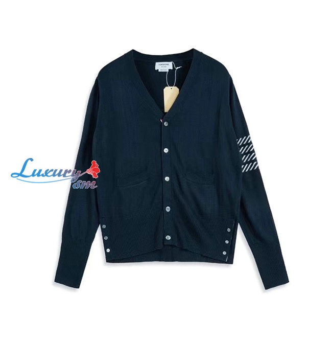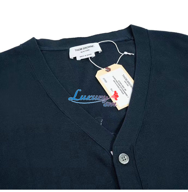 THOM BROWNE-10156 톰 브라운 네이비 캐시미어 프린트 장식 가디건 남여공용