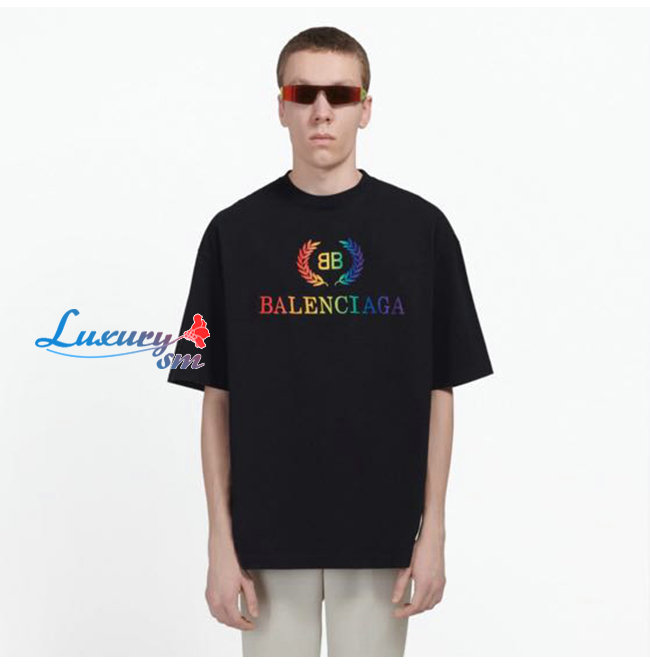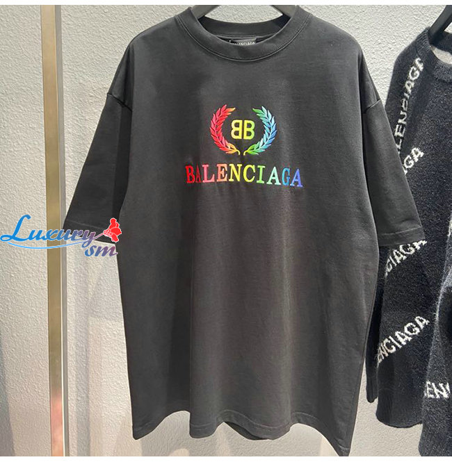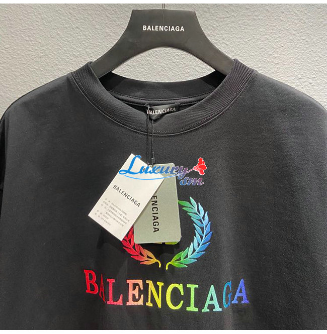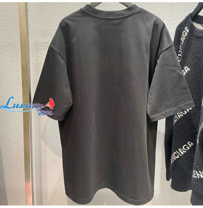 BALENCIAGA-08011 발렌시아가 블랙 코튼 프린트 장식 티셔츠 남여공용