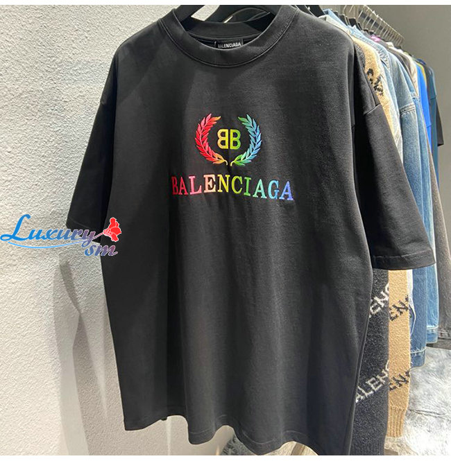 BALENCIAGA-08017 발렌시아가 블랙/화이트 코튼 프린트 장식 티셔츠 남여공용