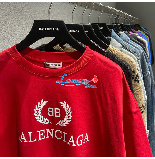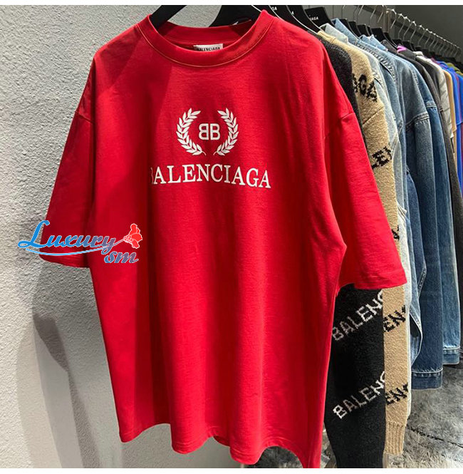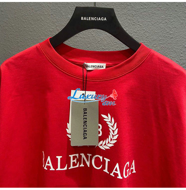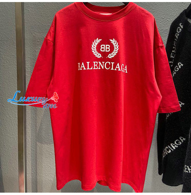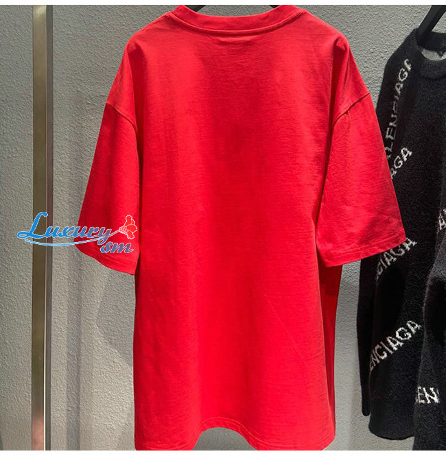 BALENCIAGA-08014 발렌시아가 레드 코튼 프린트 장식 티셔츠 남여공용