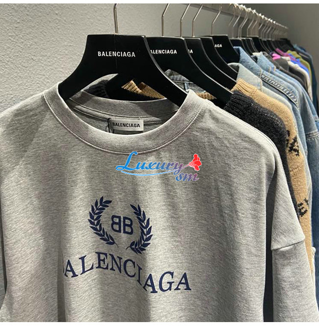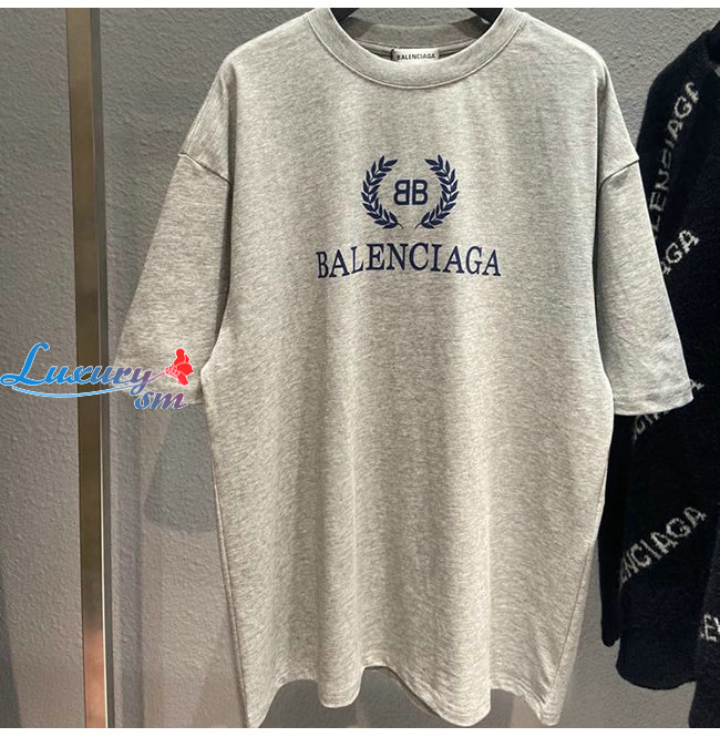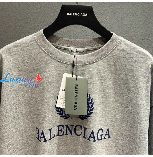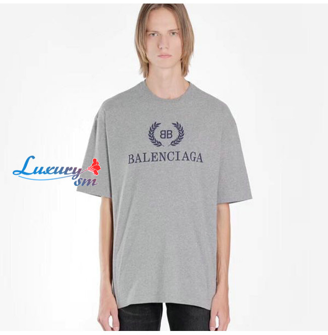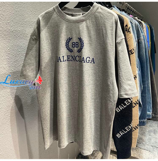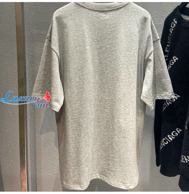 BALENCIAGA-08015 발렌시아가 그레이 코튼 프린트 장식 티셔츠 남여공용