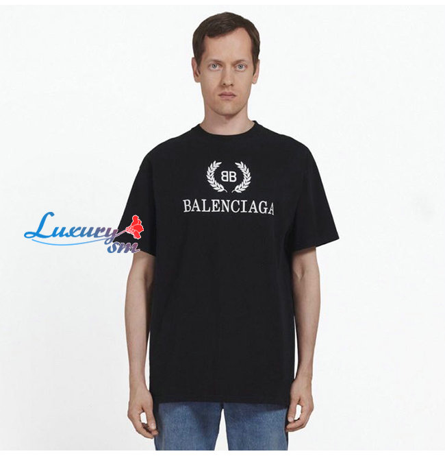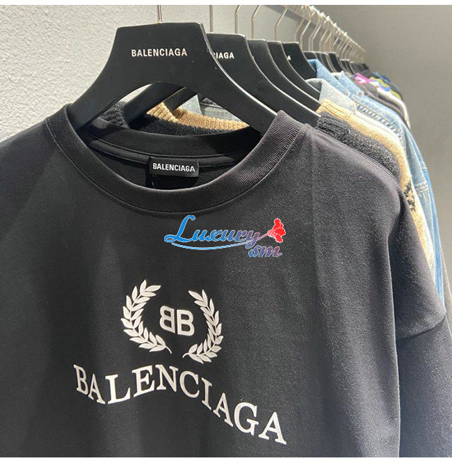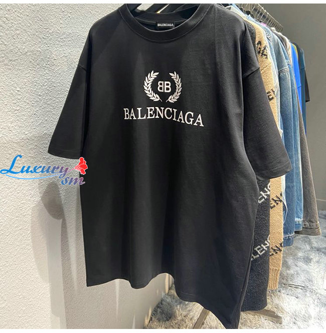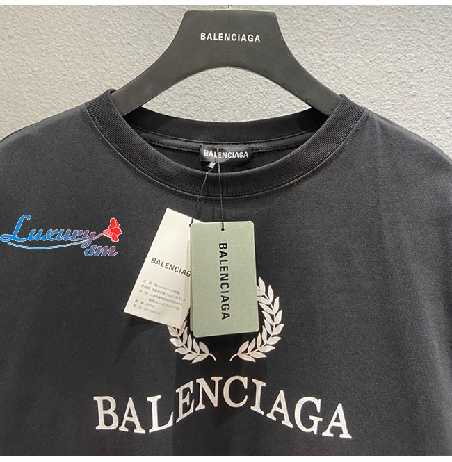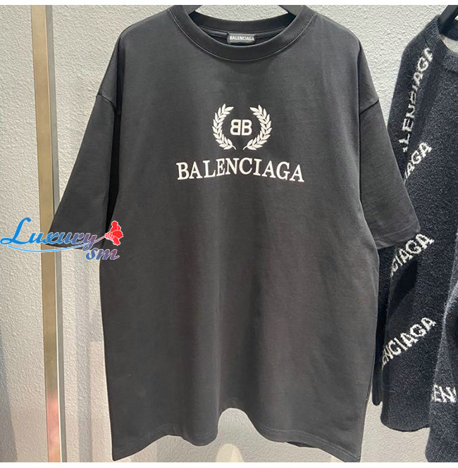 BALENCIAGA-08017 발렌시아가 블랙/화이트 코튼 프린트 장식 티셔츠 남여공용
