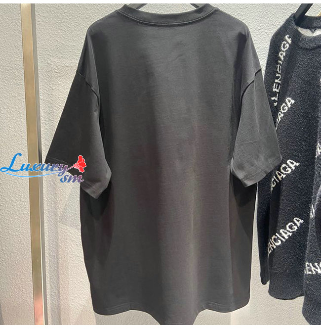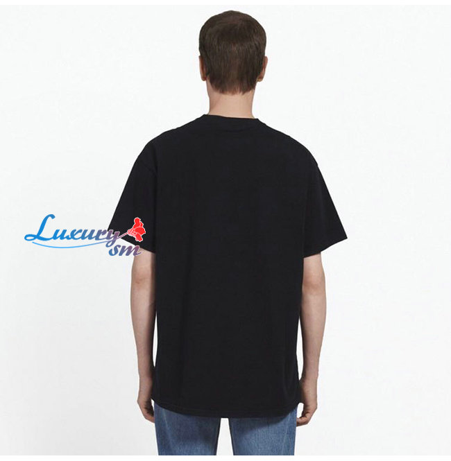 BALENCIAGA-08011 발렌시아가 블랙 코튼 프린트 장식 티셔츠 남여공용