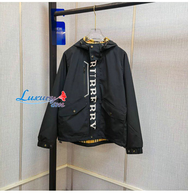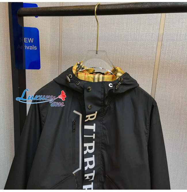 BURBERRY-07257 버버리 블랙 나일론 프린트 장식 야광 바람막이 후드 쟈켓 남성용