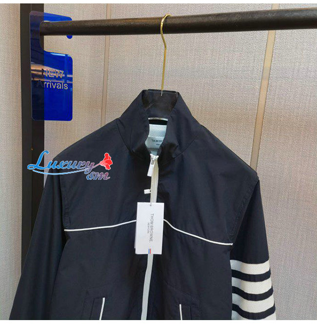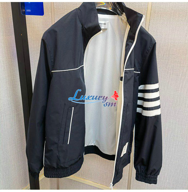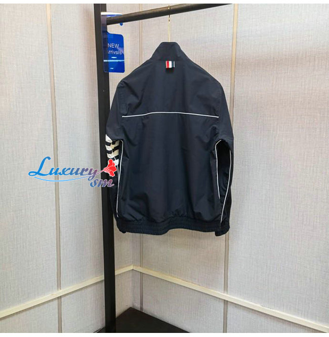 THOM BROWNE-072111 톰 브라운 네이비 나일론 스트라이프 장식 바람막이 쟈켓 남성용