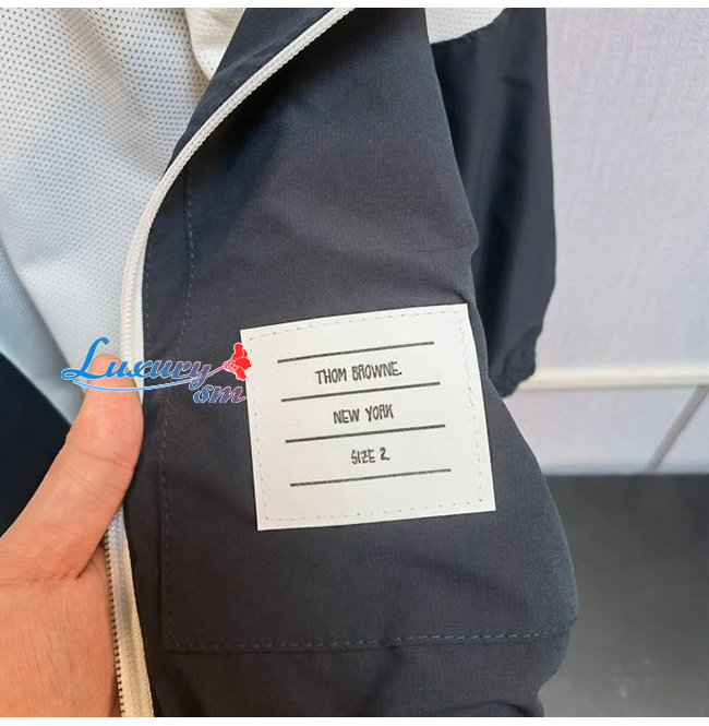 THOM BROWNE-072113 톰 브라운 그레이 나일론 스트라이프 장식 바람막이 쟈켓 남성용 가격 : 210,000원