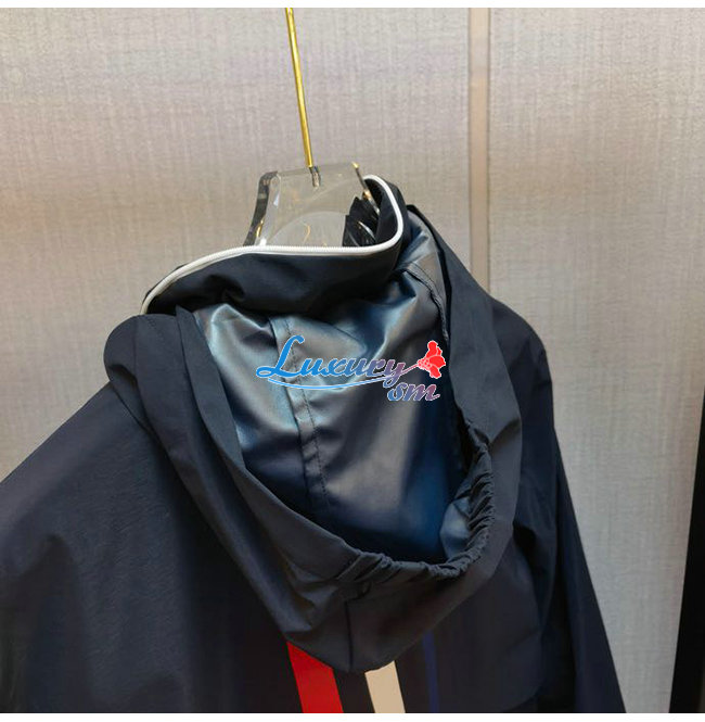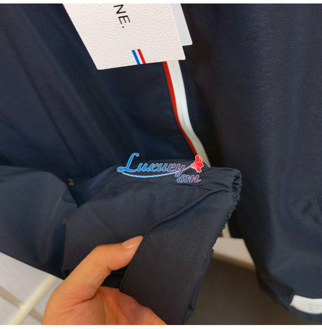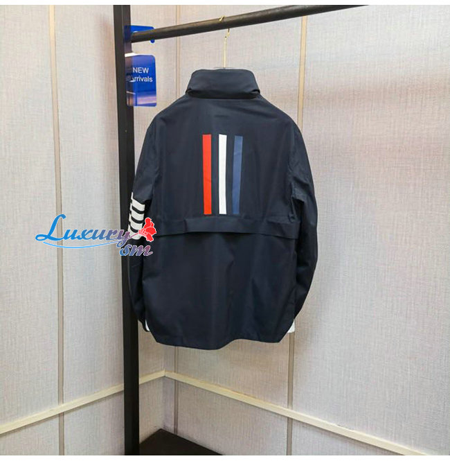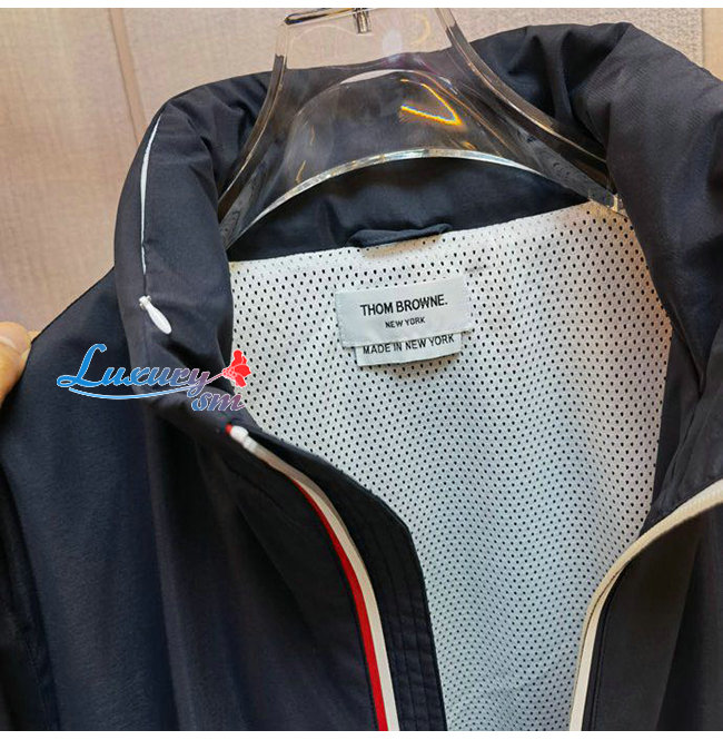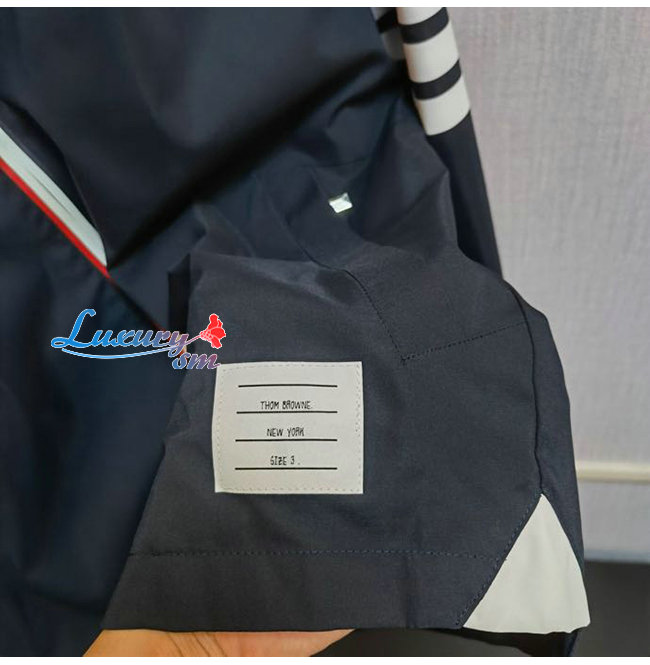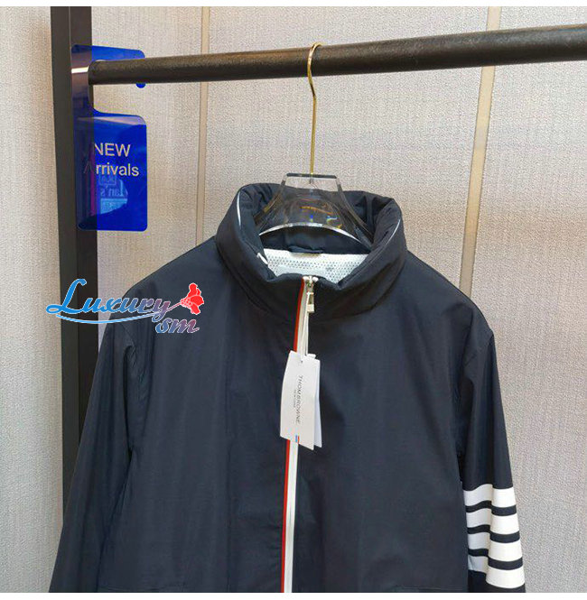 THOM BROWNE-07219 톰 브라운 네이비 나일론 스트라이프 장식 바람막이 후드 쟈켓 남성용