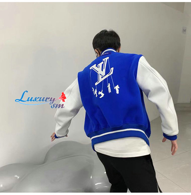 LOUIS VUITTON-12123 루이비통 블루 울 아플리케 장식 봄버 쟈켓 남여공용