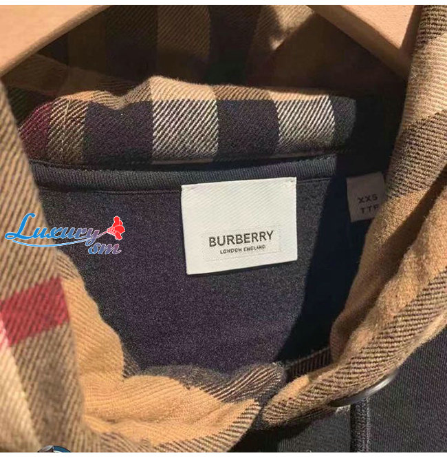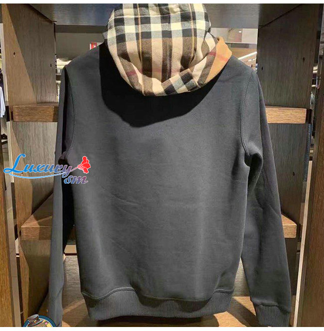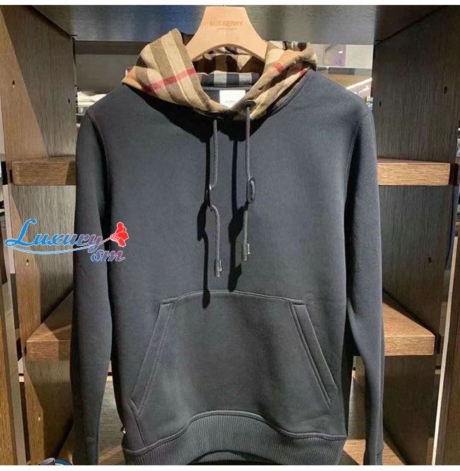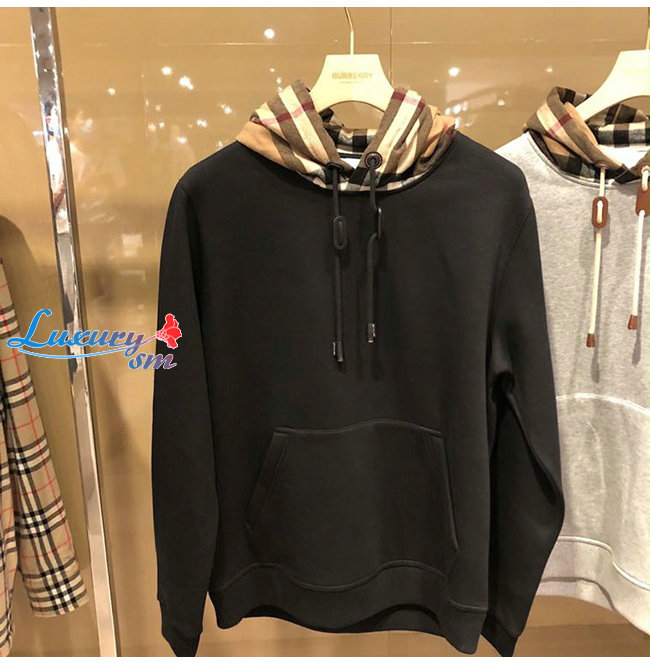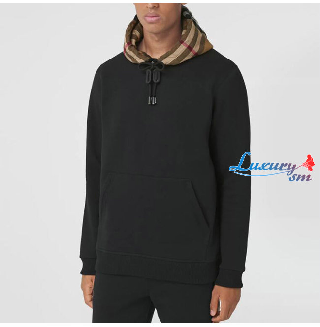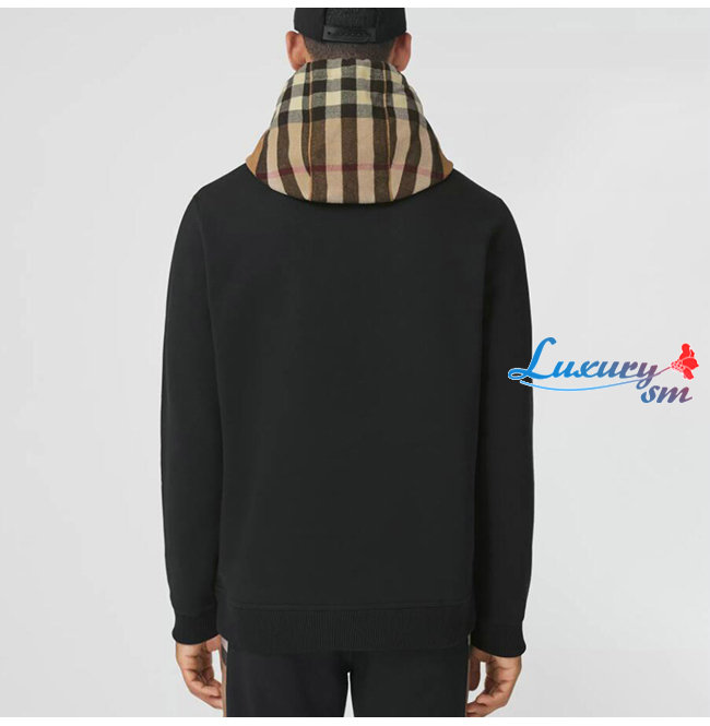 BURBERRY-80450041 버버리 블랙 체크 후드 코튼 블렌드 후디