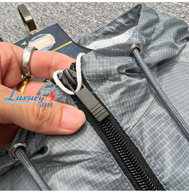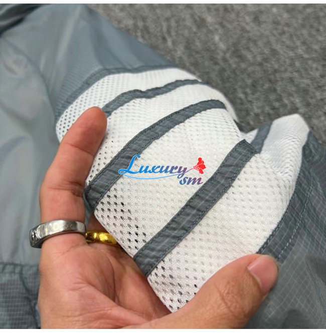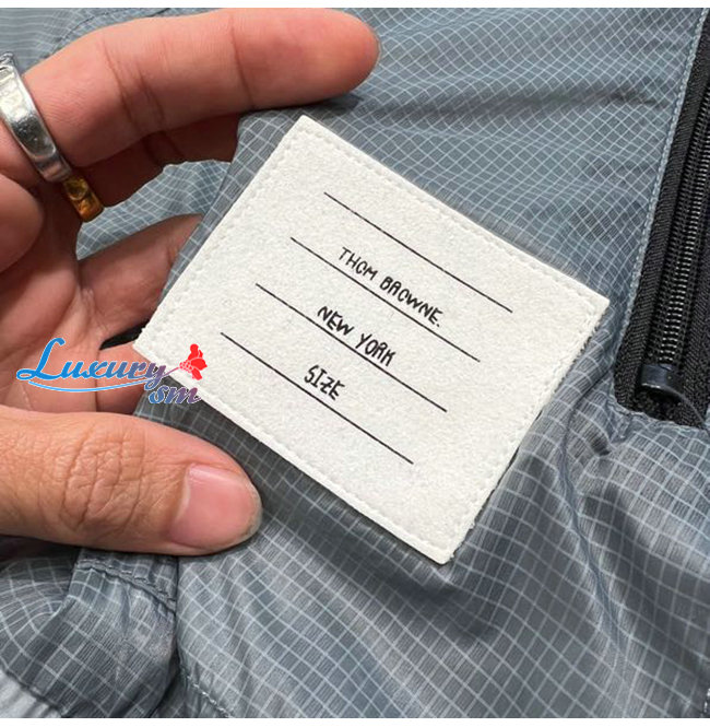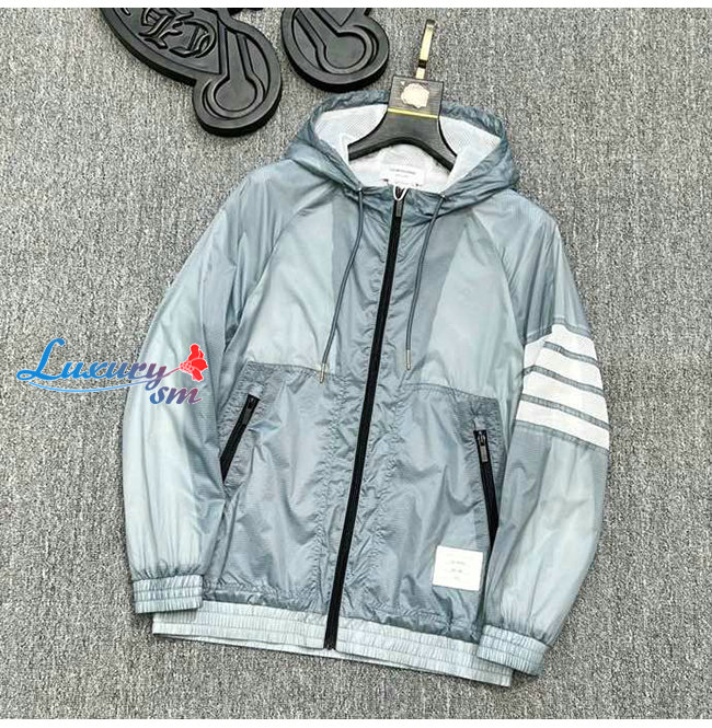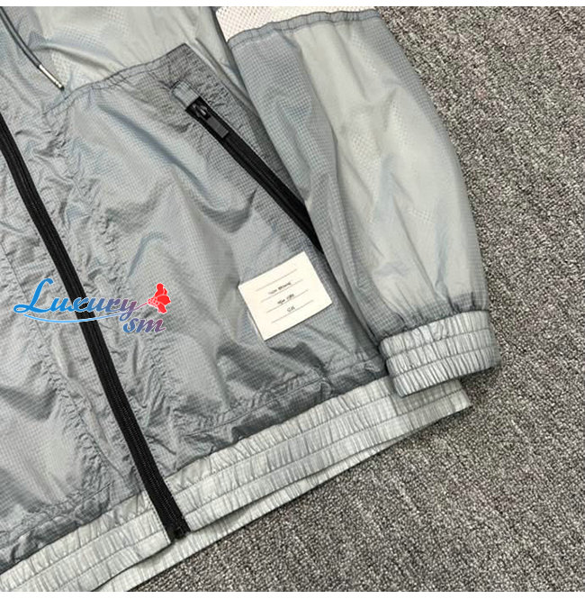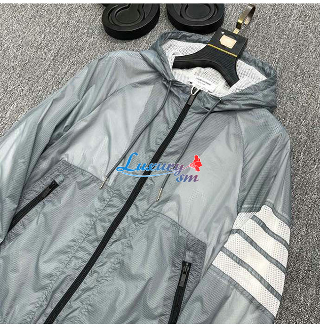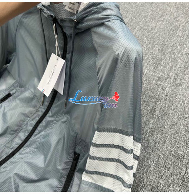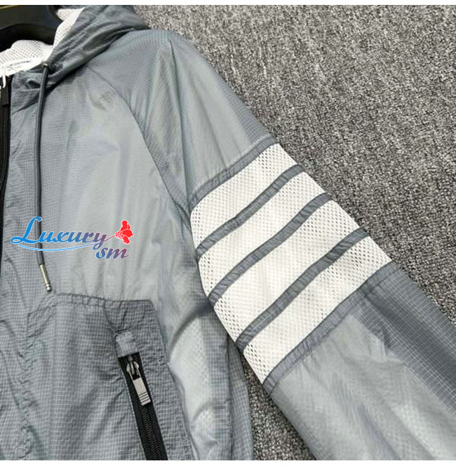 THOM BROWNE-02111 톰 브라운 그레이 스트라이프 장식 바람막이 후드 쟈켓 남성용