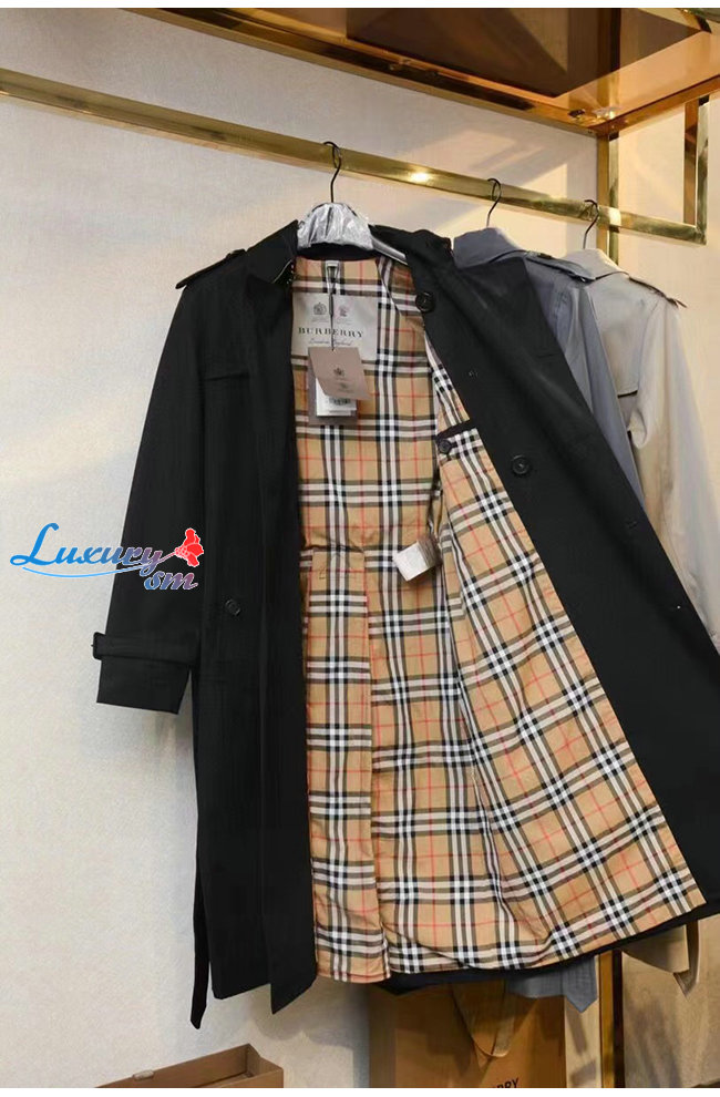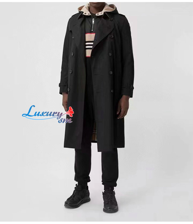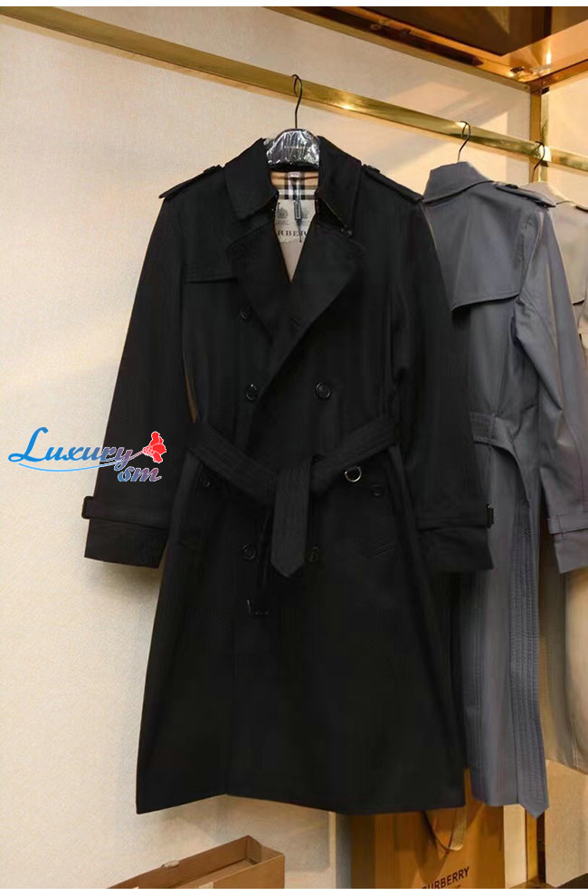 BURBER**-02275 버버리 블랙 코튼 트렌치코트 남성용