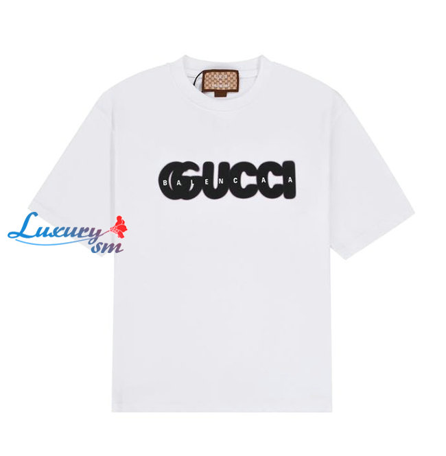 GUCC*-022814 구찌 화이트 구찌 X 발렌시아가 콜라보 GUCCI 프린트 장식 티셔츠 남여공용