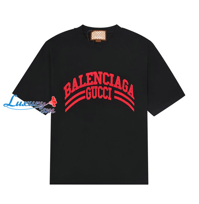 GUCC*-022815 구찌 블랙 구찌 X 발렌시아가 콜라보 아플리케 장식 티셔츠 남여공용