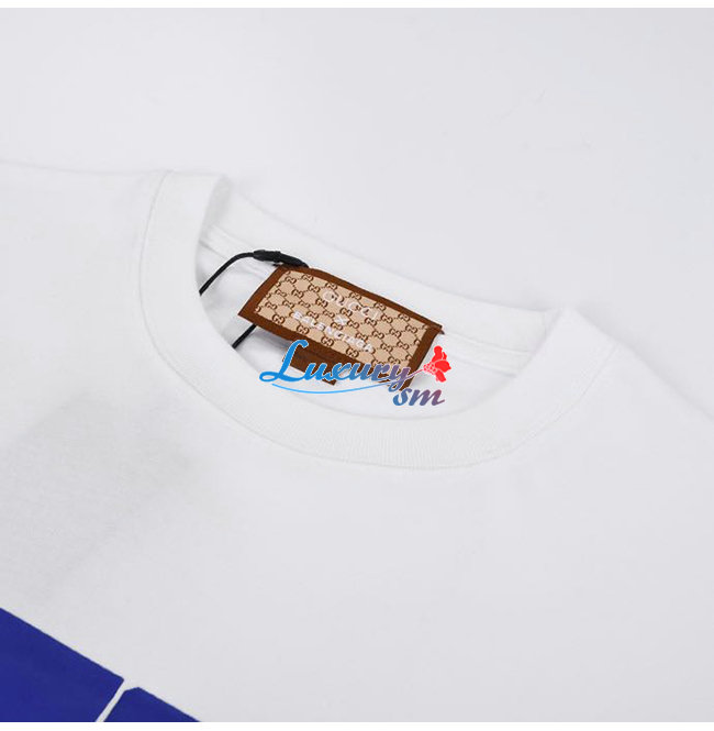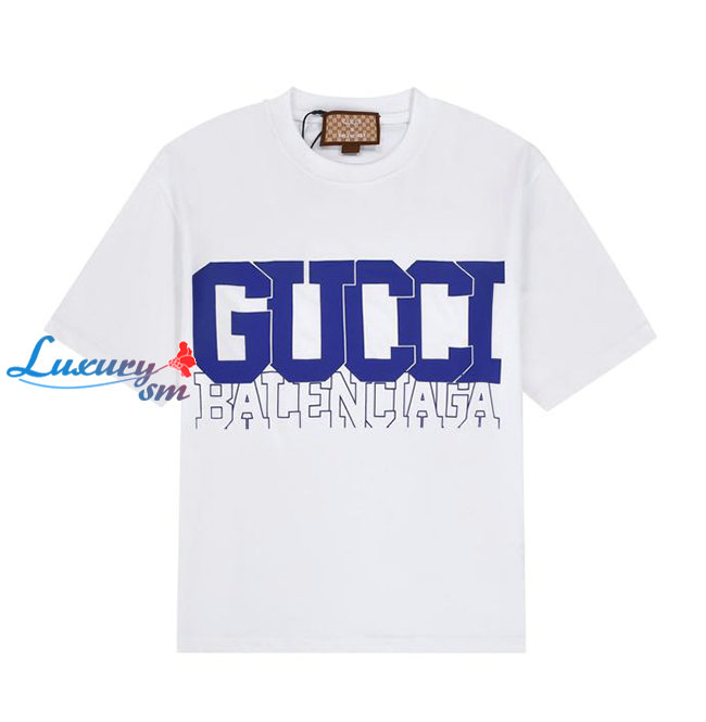 GUCC*-03089 구찌 화이트/블루 구찌 X 발렌시아가 콜라보 프린트 장식 티셔츠 남여공용