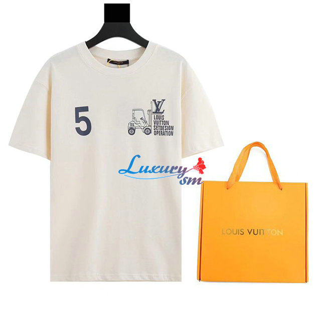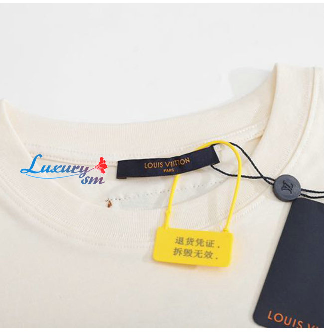 LOUIS VUITT**-030812 루이비통 아이보리 프린트 장식 티셔츠 남여공용