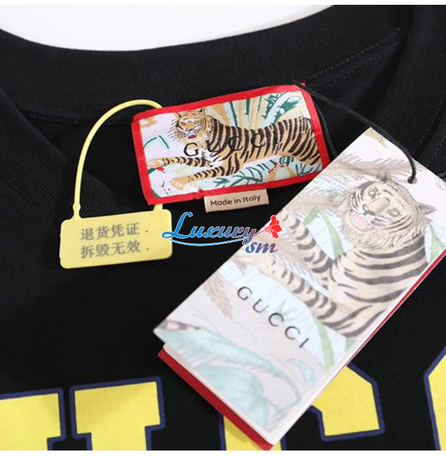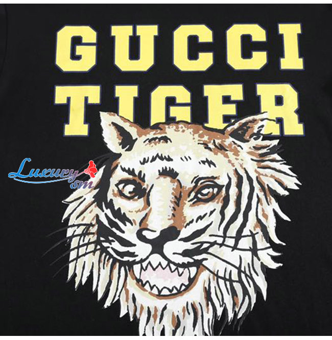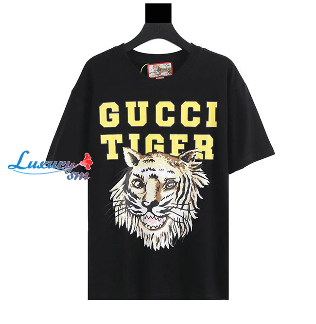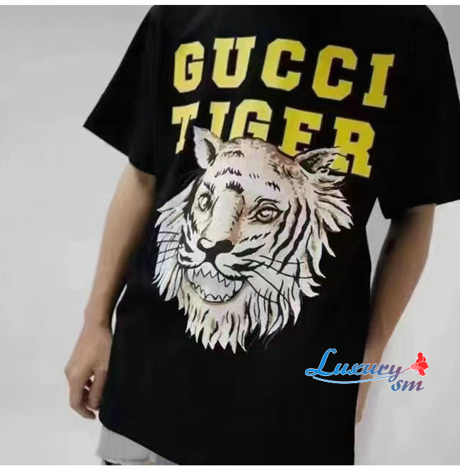 GUCC*-03072 구찌 블랙 타이거 프린트 장식 티셔츠 남여공용